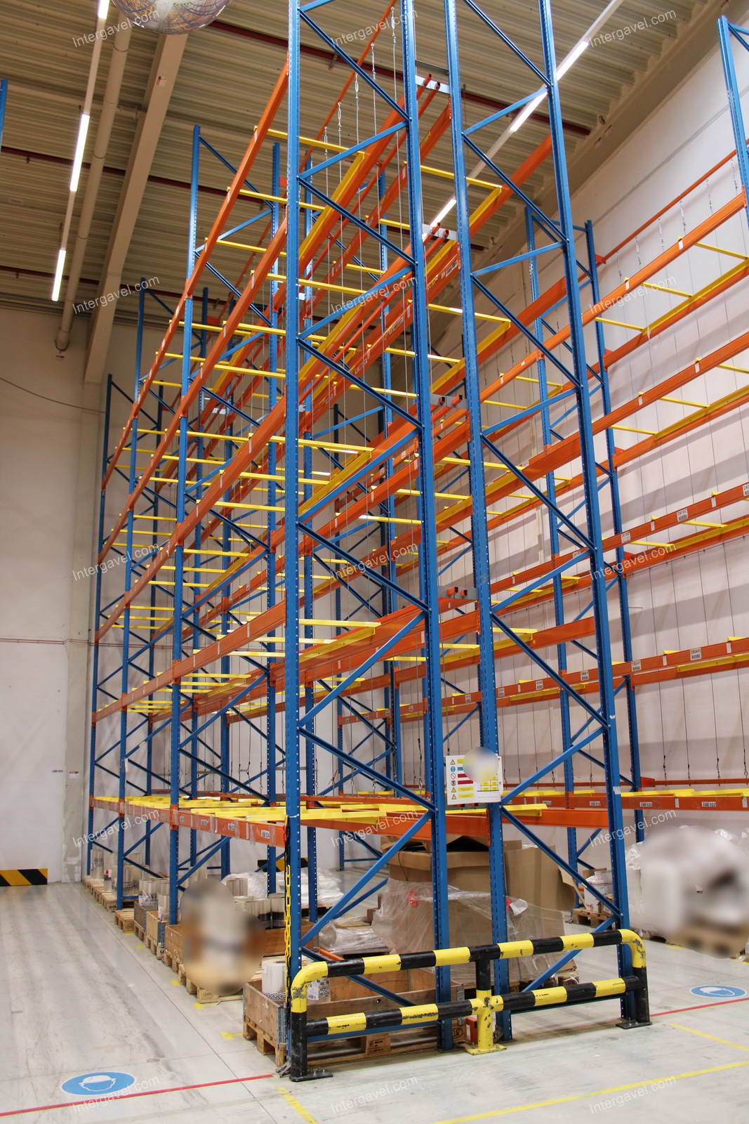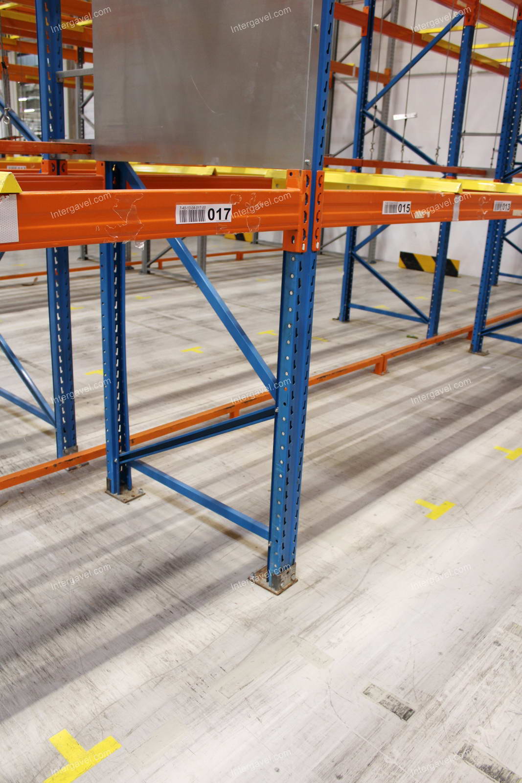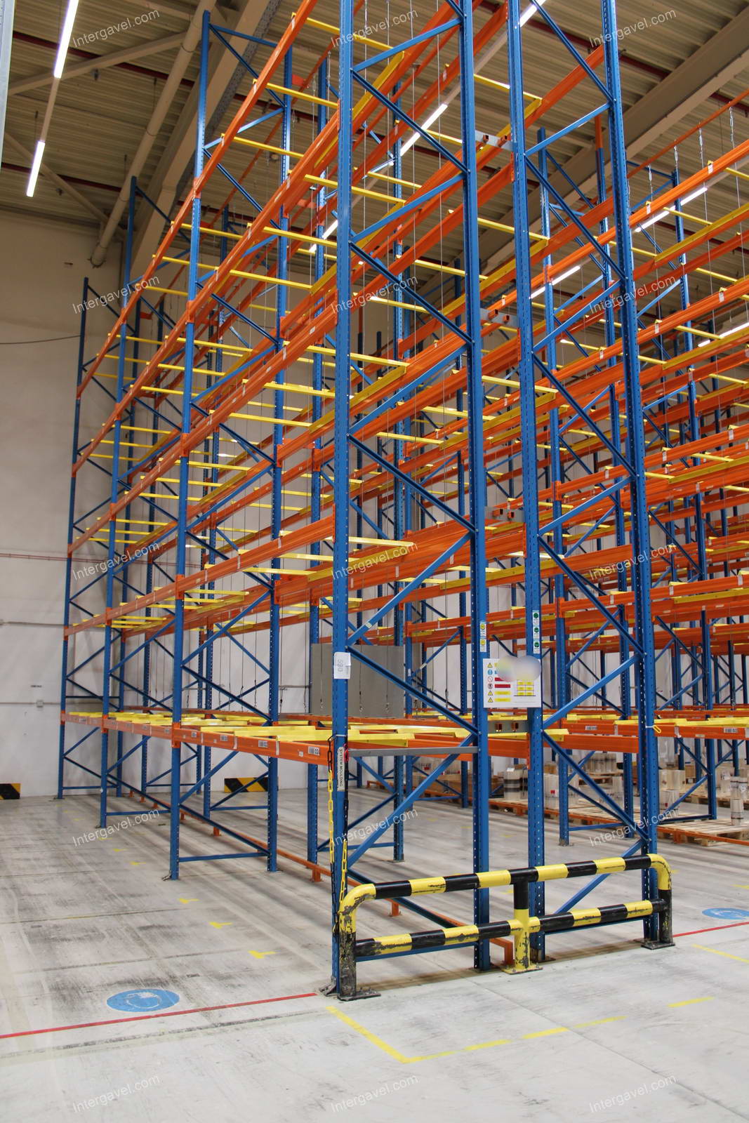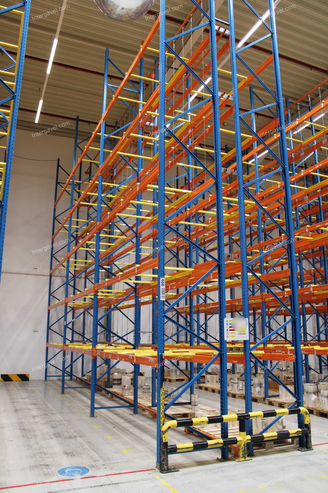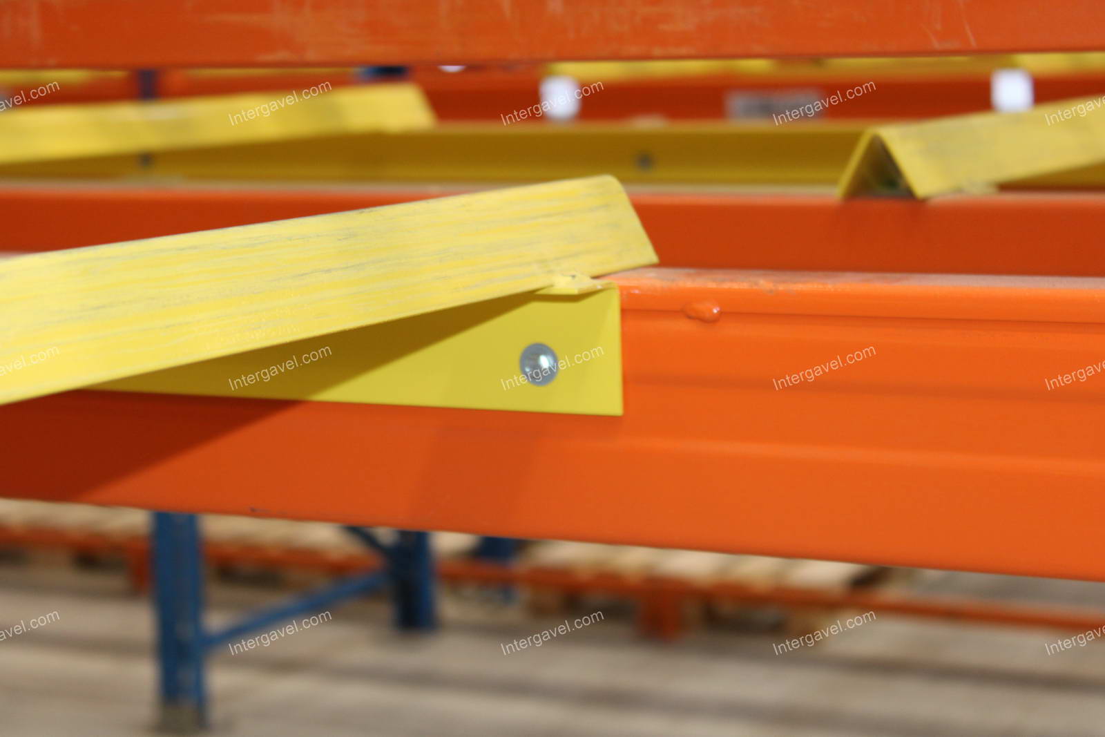 - paletta megvezető - tartószint közepén lévő, gerendákhoz rögzített sárga színű szerkezet