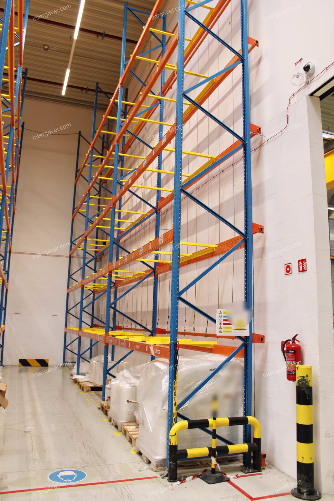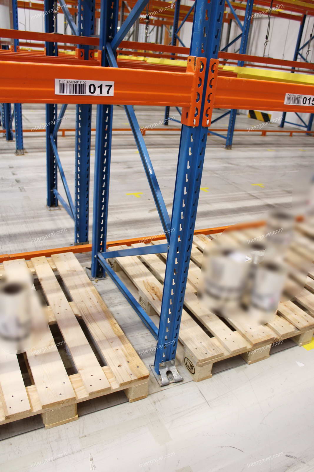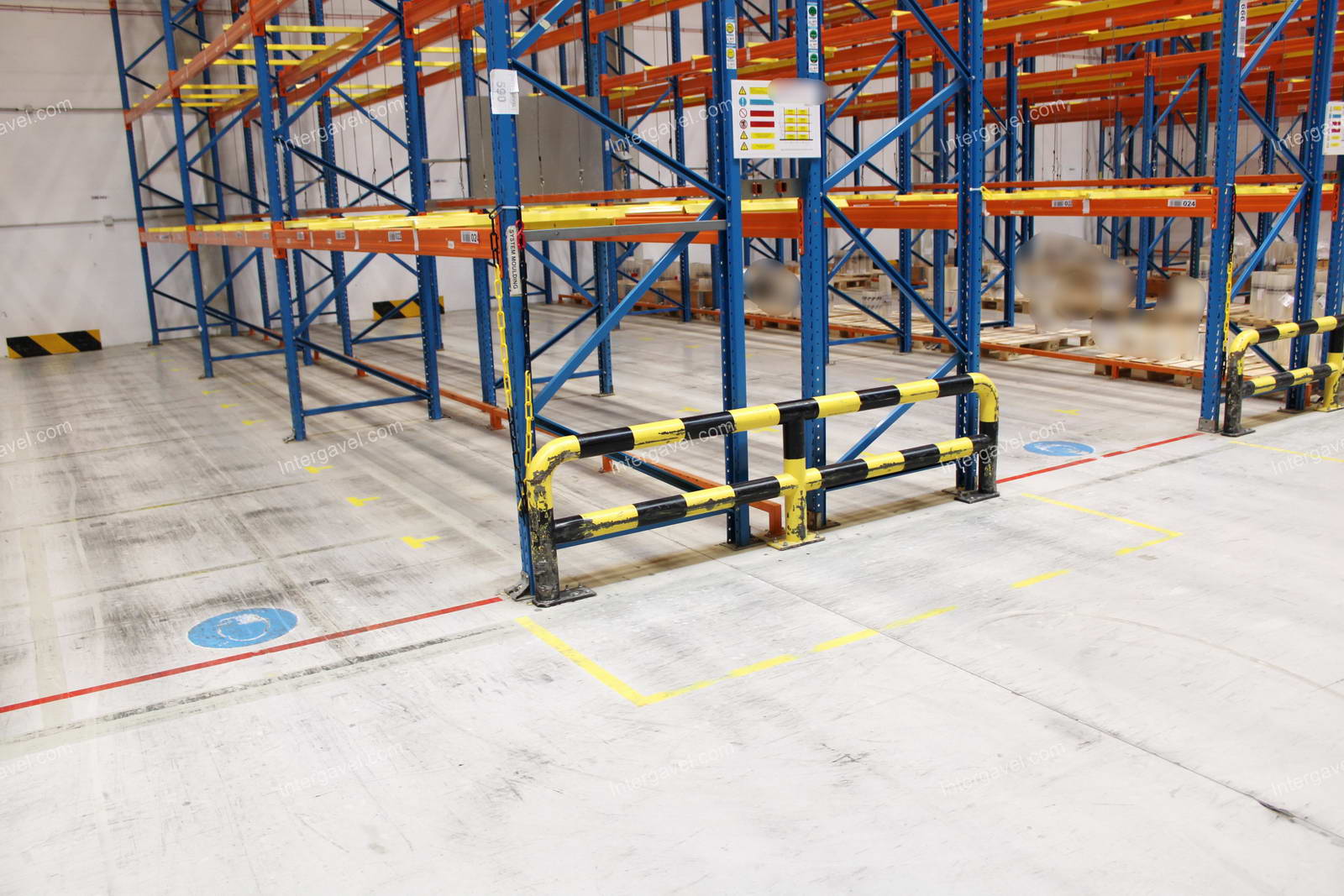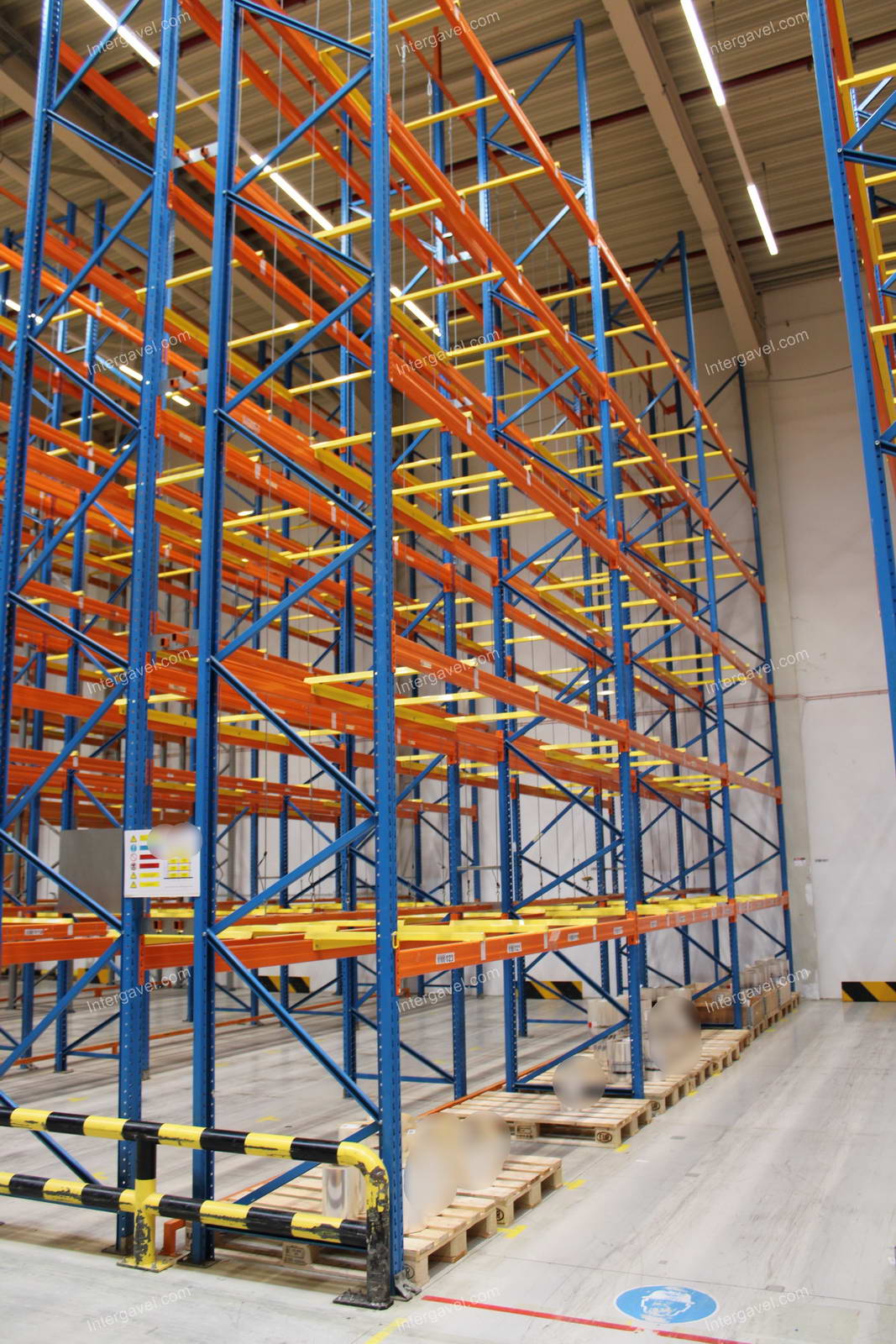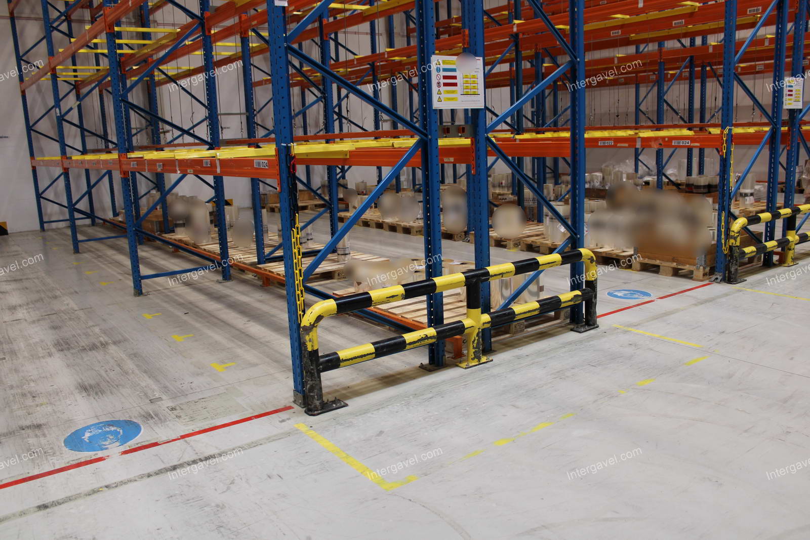 - paletta megvezető - tartószint közepén lévő, gerendákhoz rögzített sárga színű szerkezet