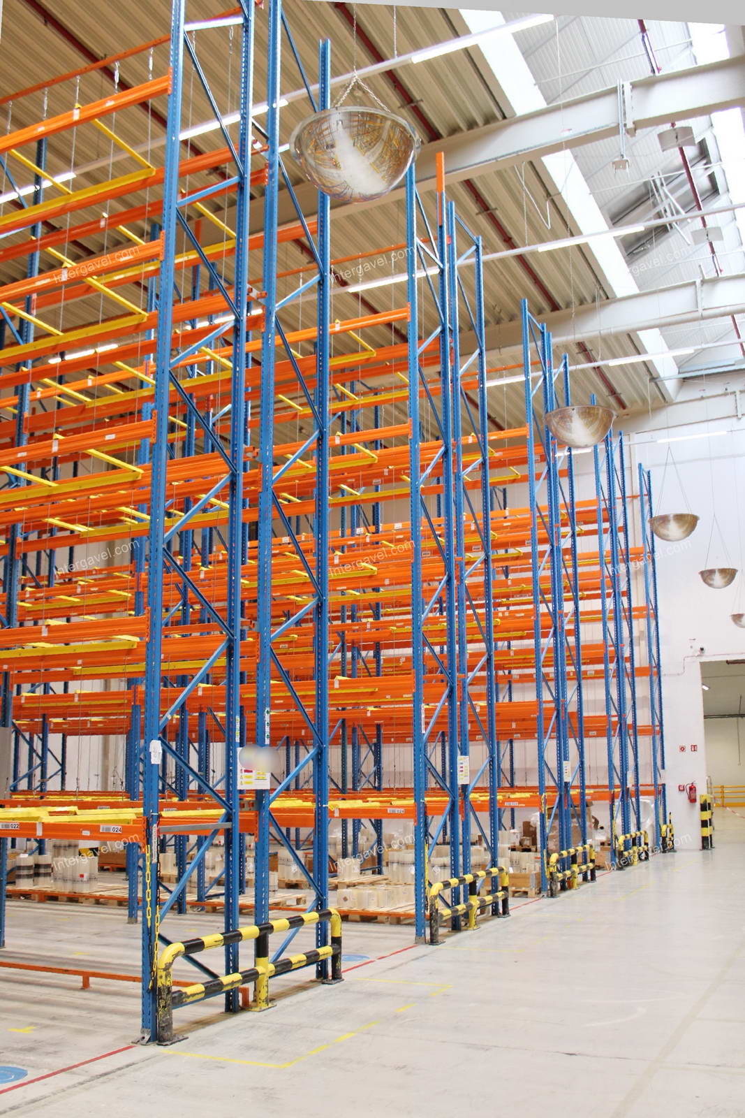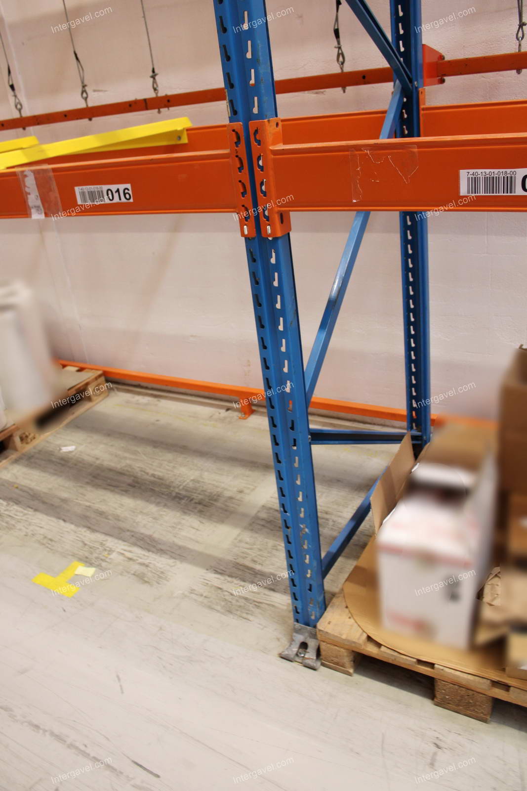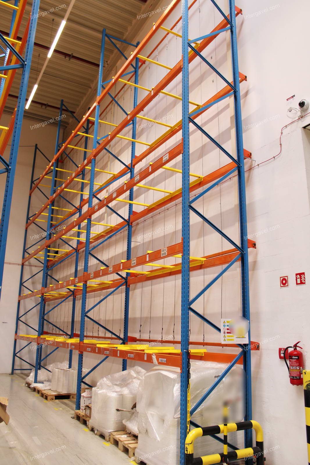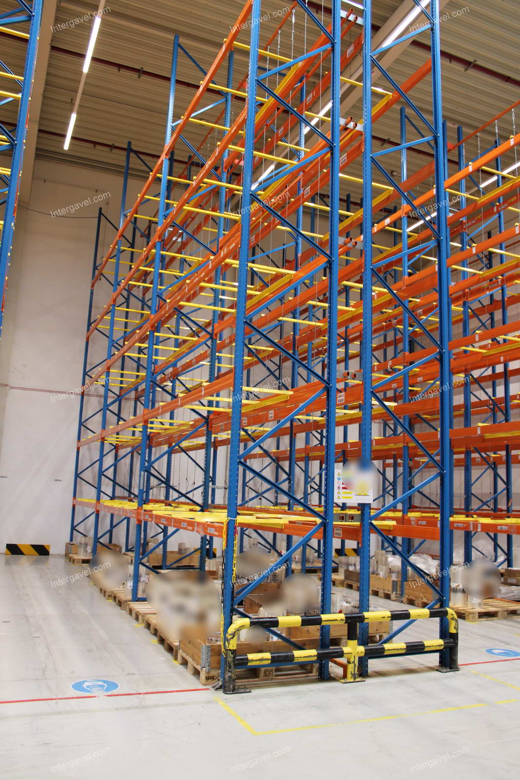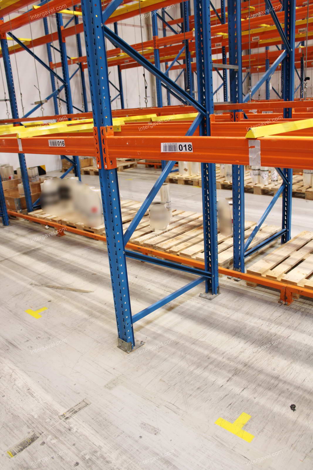 - paletta megvezető - tartószint közepén lévő, gerendákhoz rögzített sárga színű szerkezet