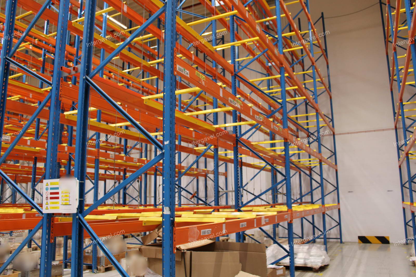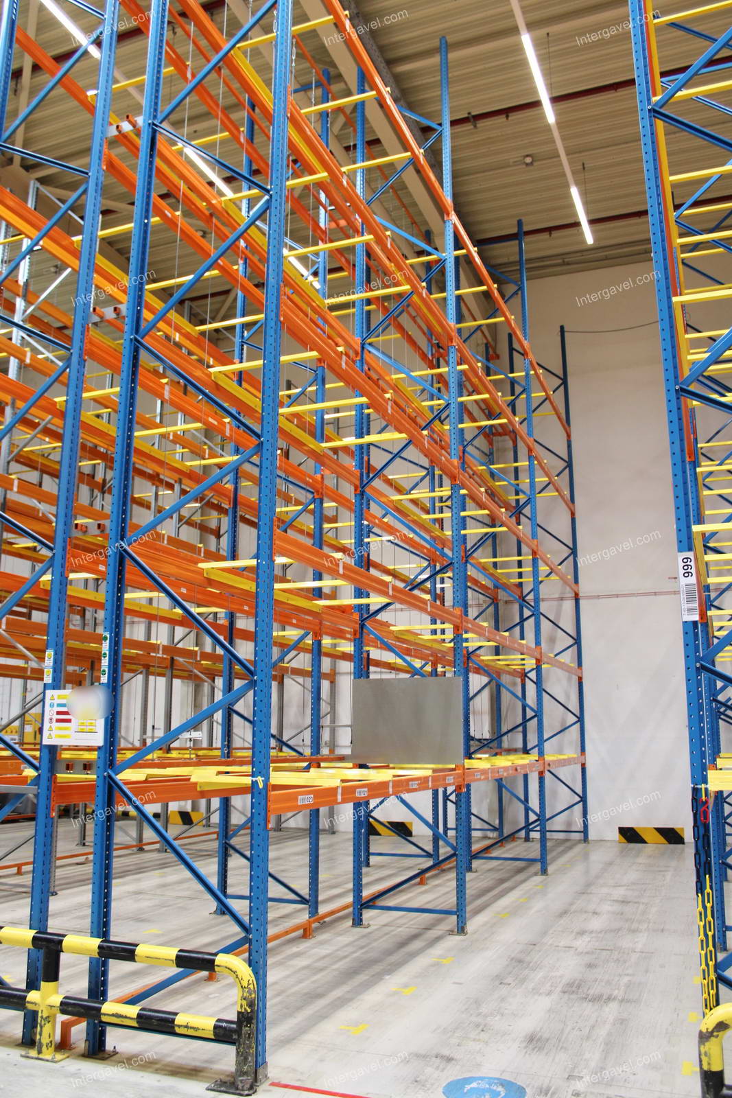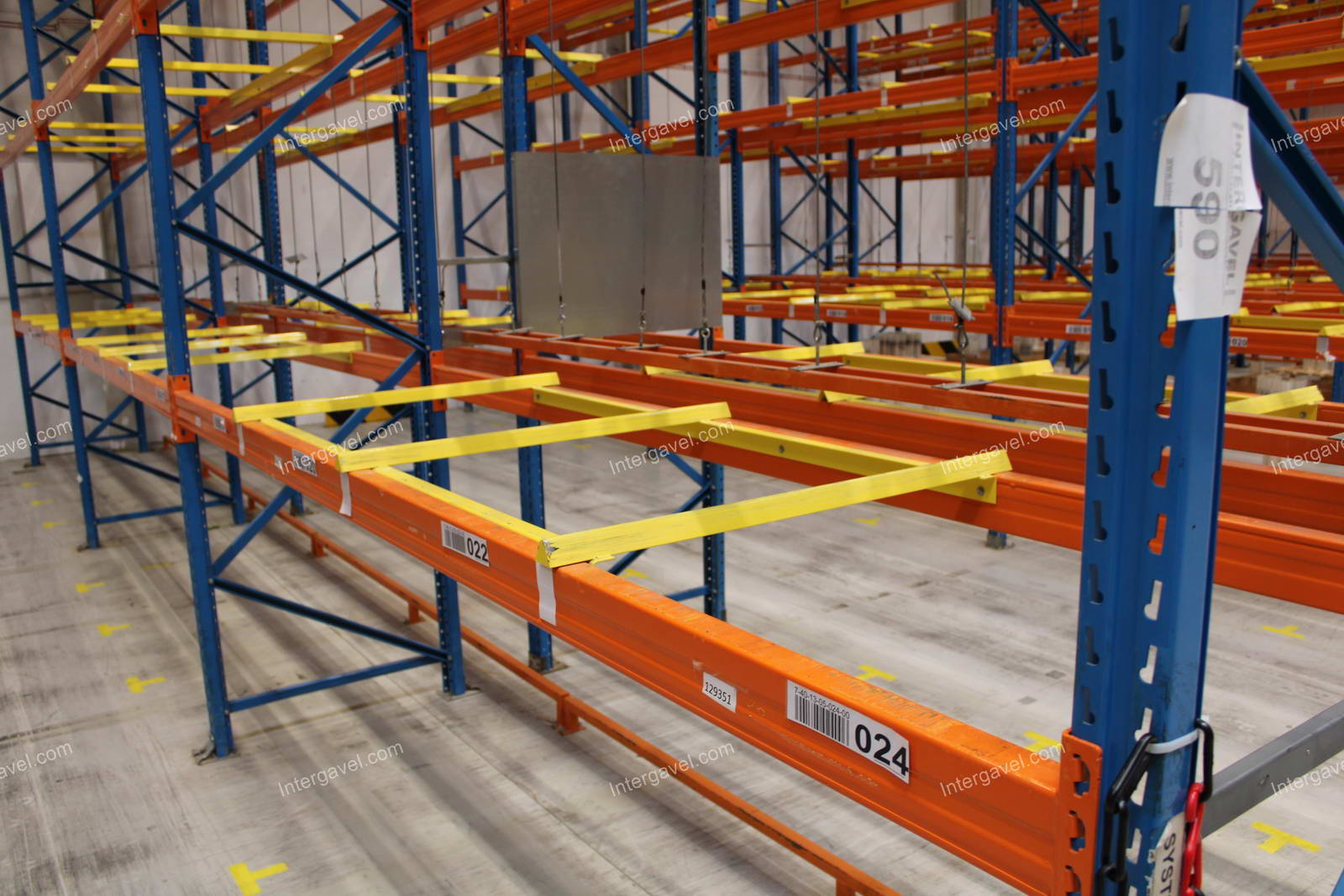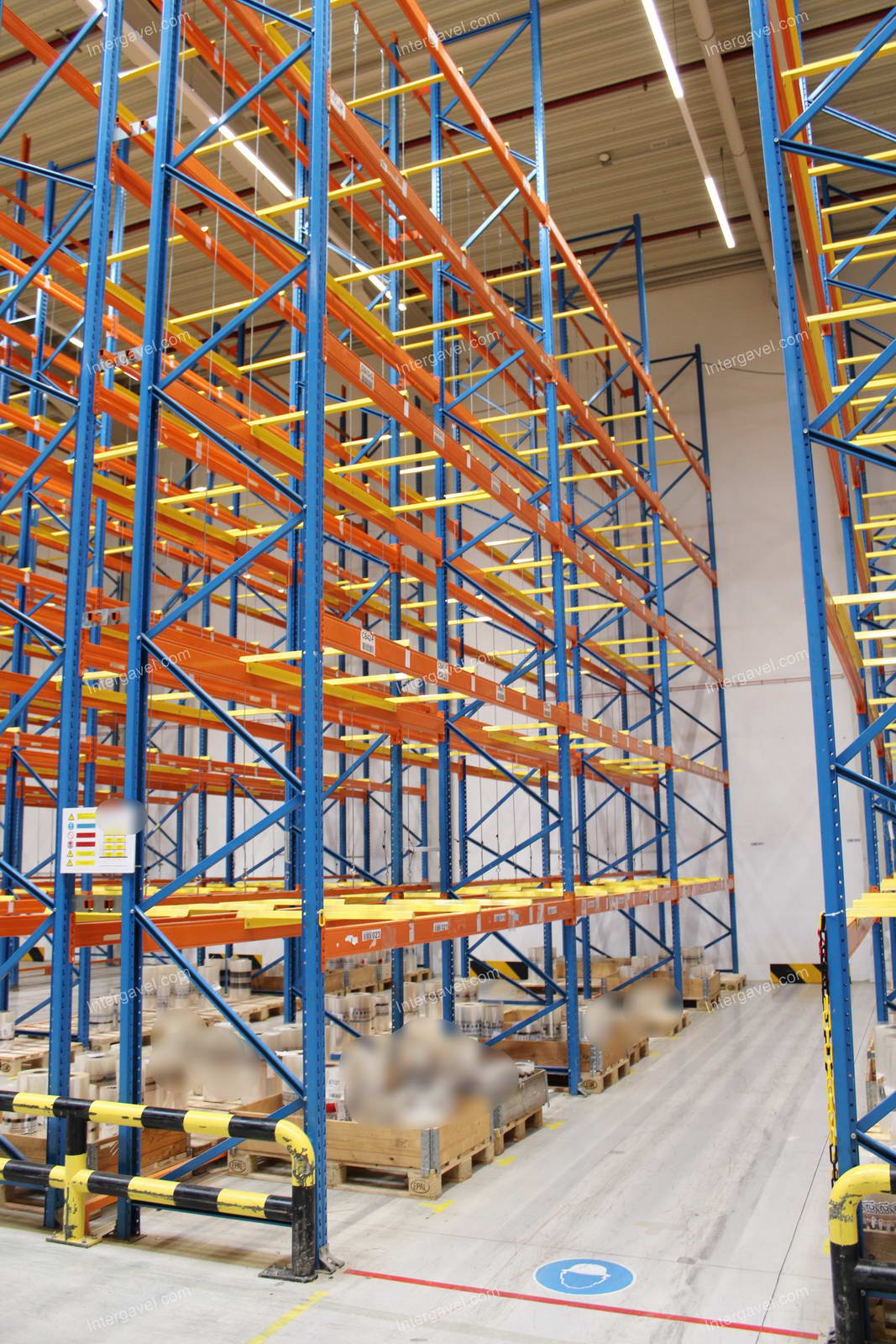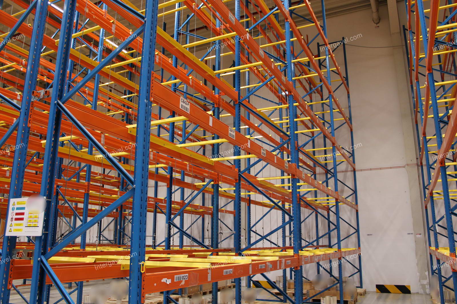 - paletta megvezető - tartószint közepén lévő, gerendákhoz rögzített sárga színű szerkezet