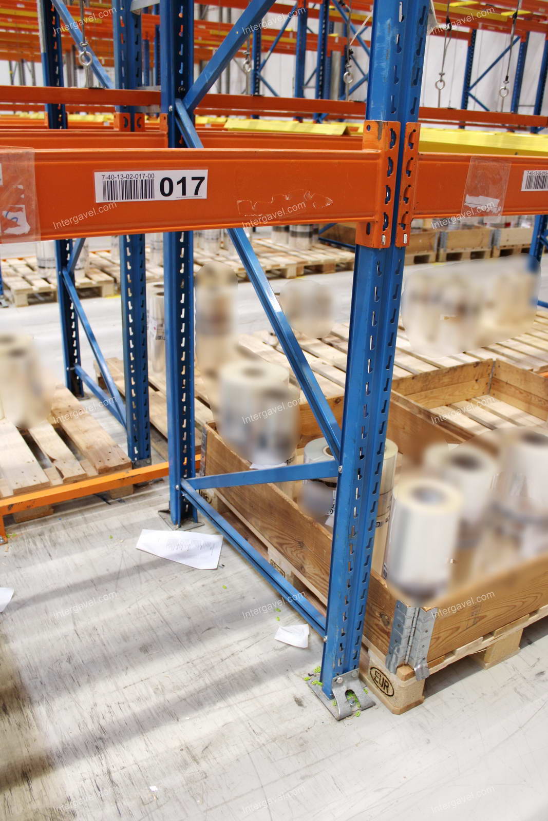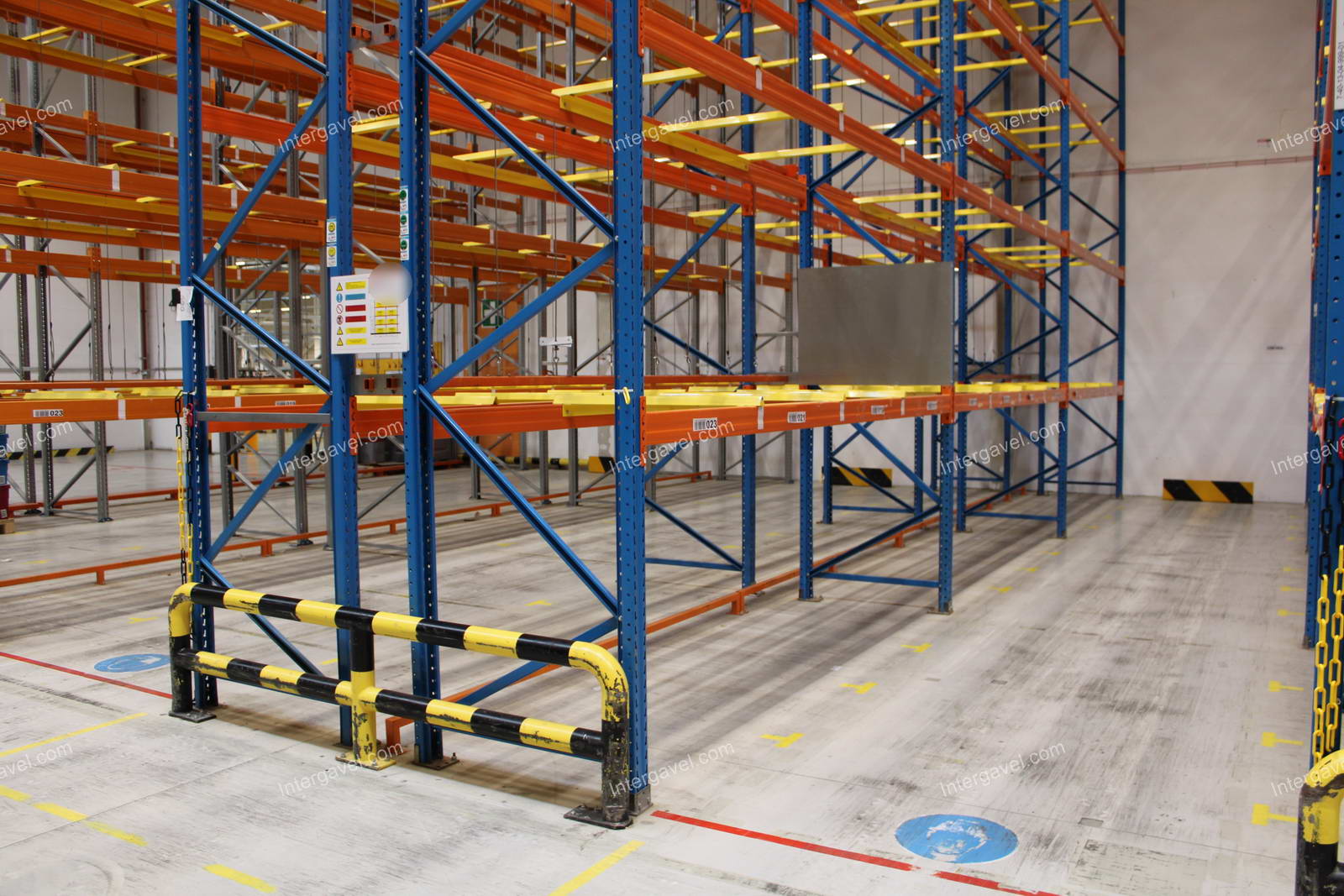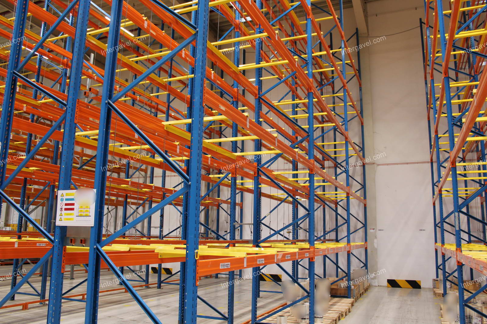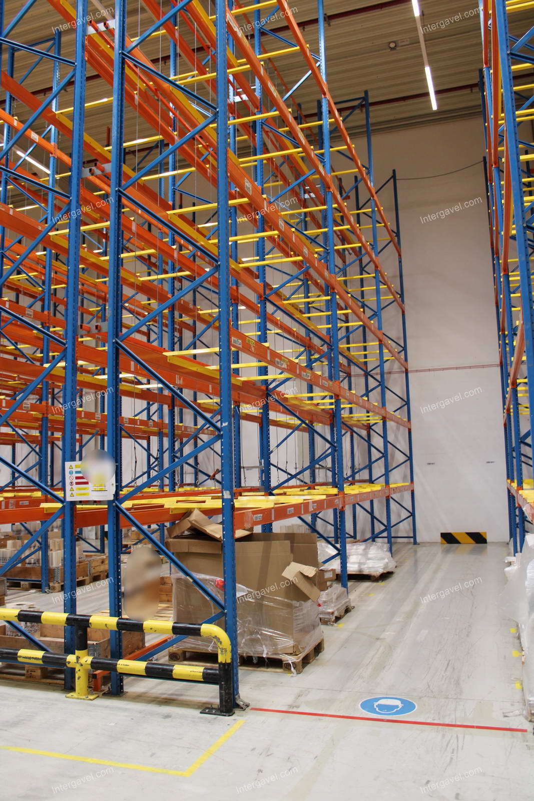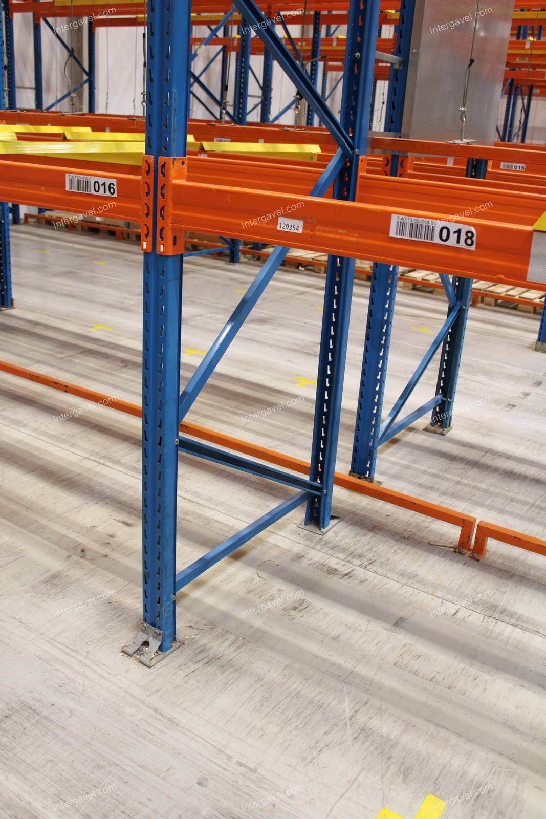 - paletta megvezető - tartószint közepén lévő, gerendákhoz rögzített sárga színű szerkezet