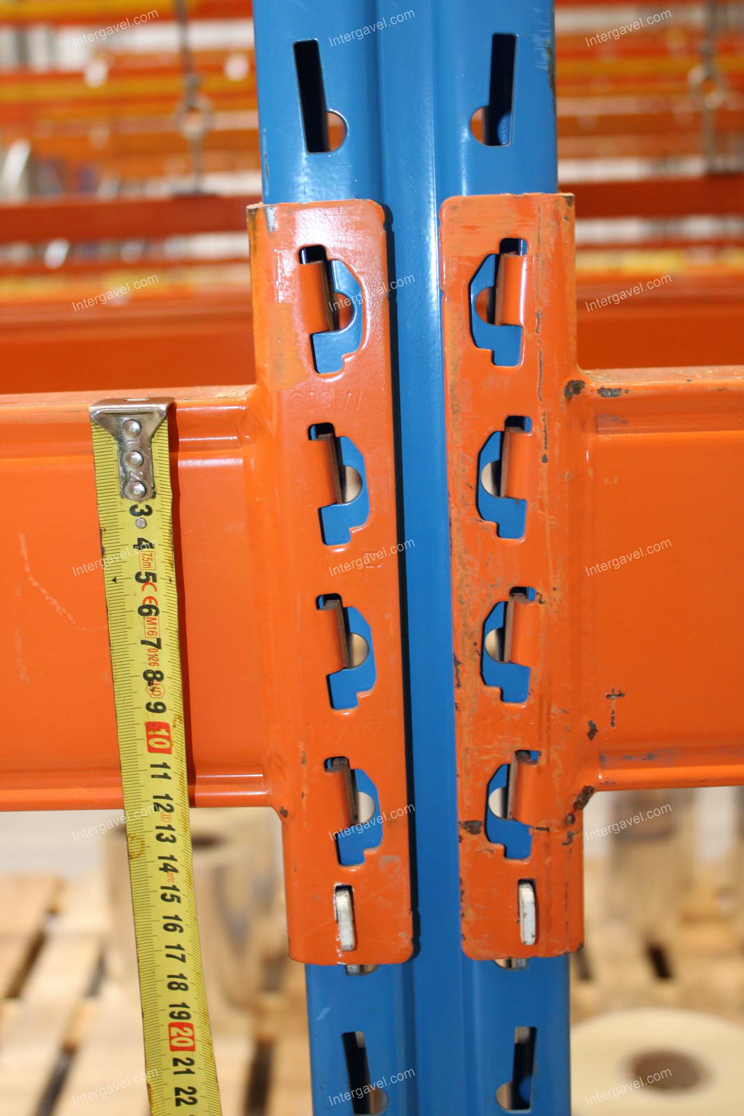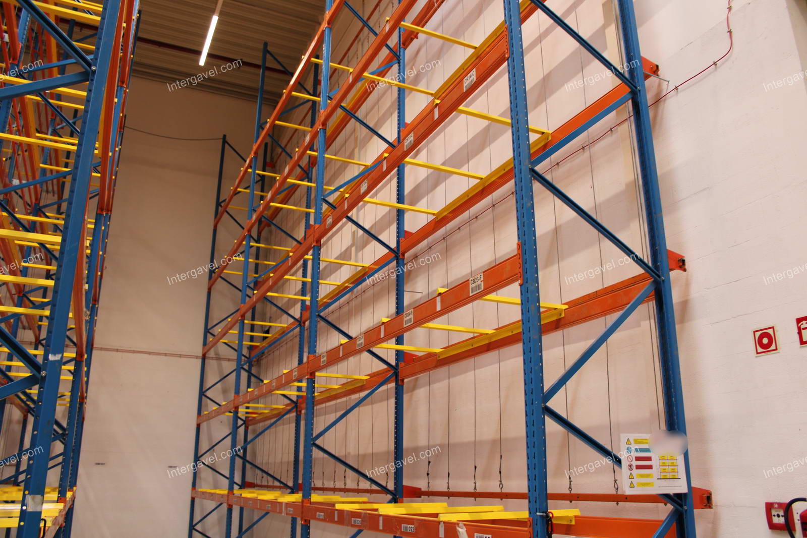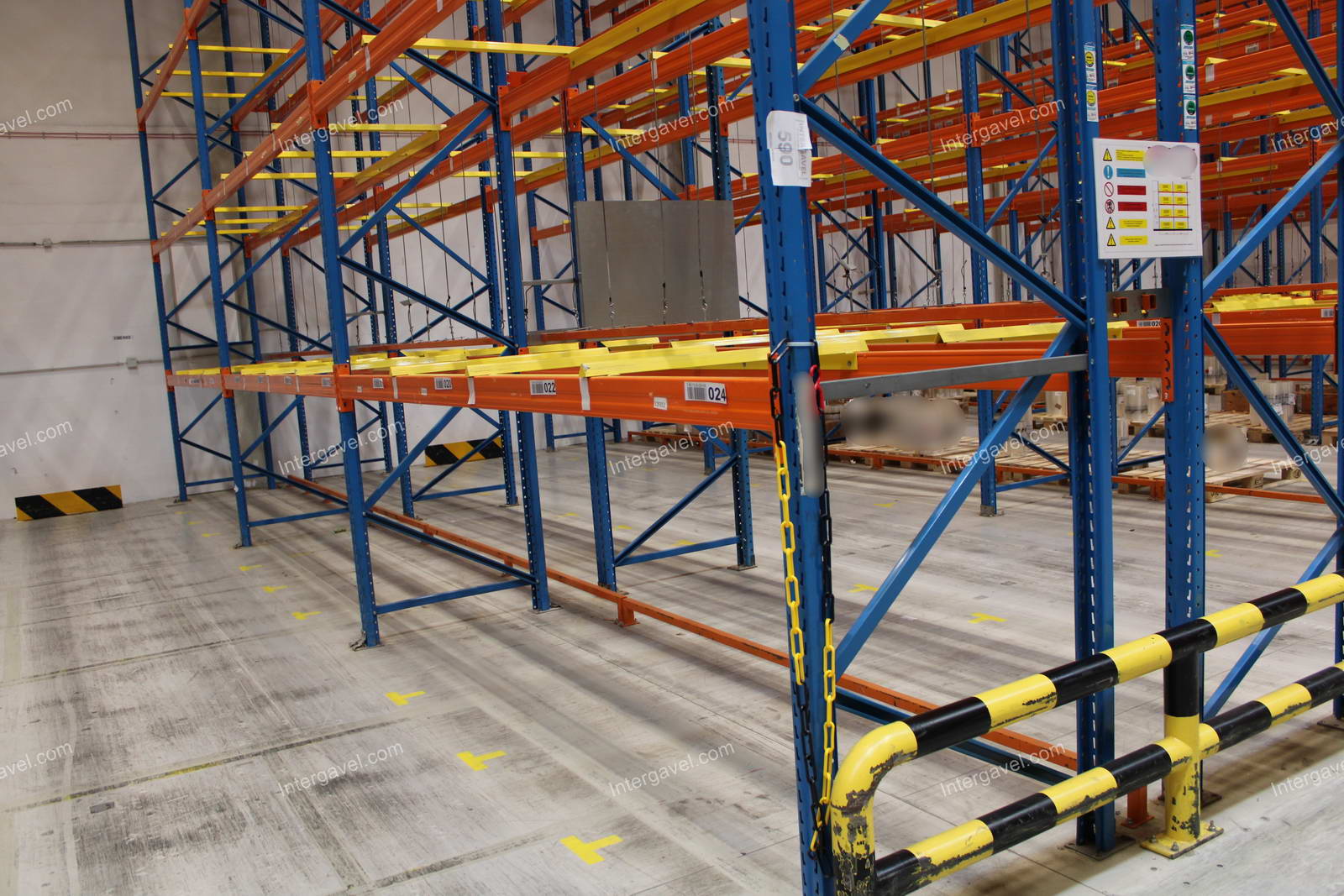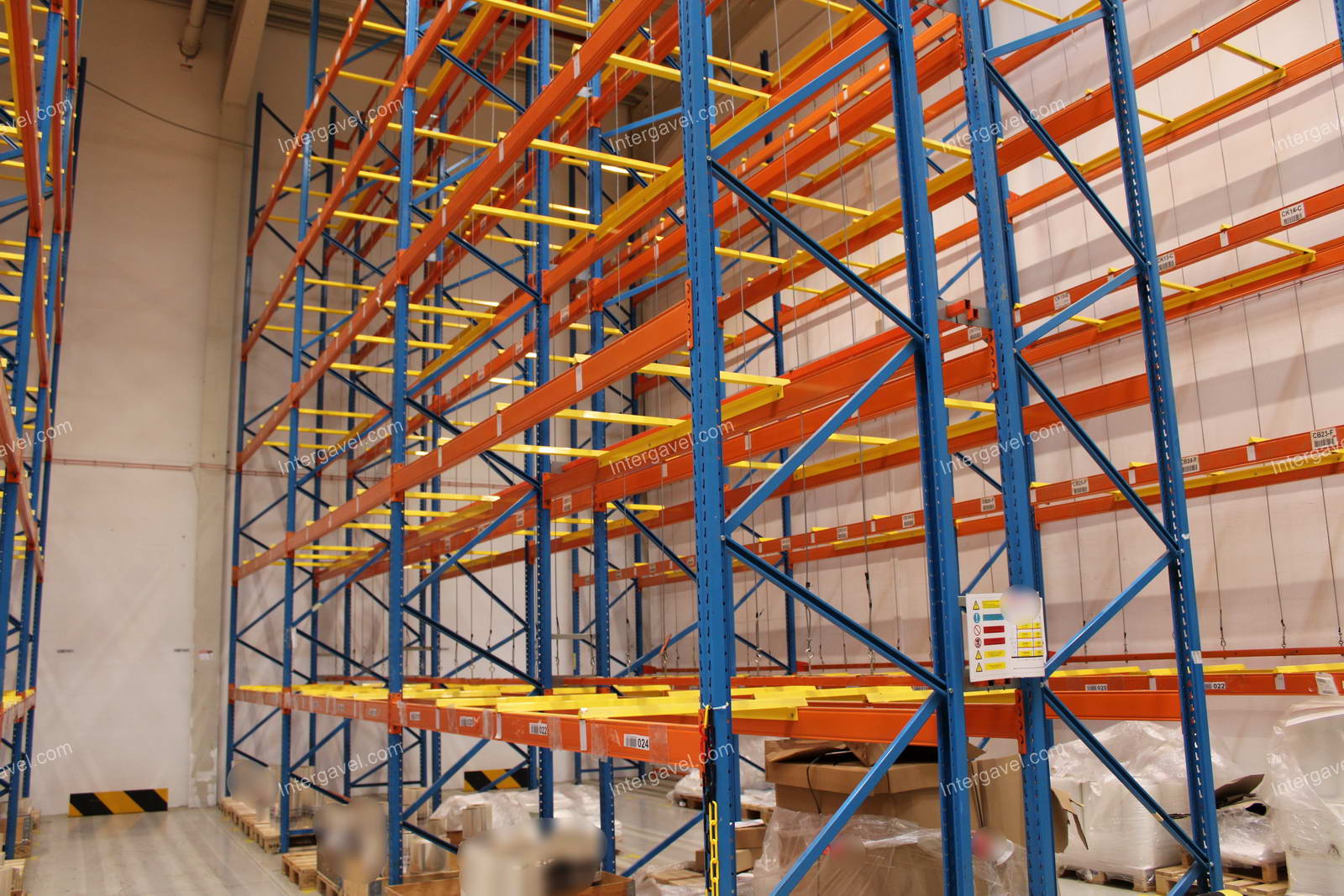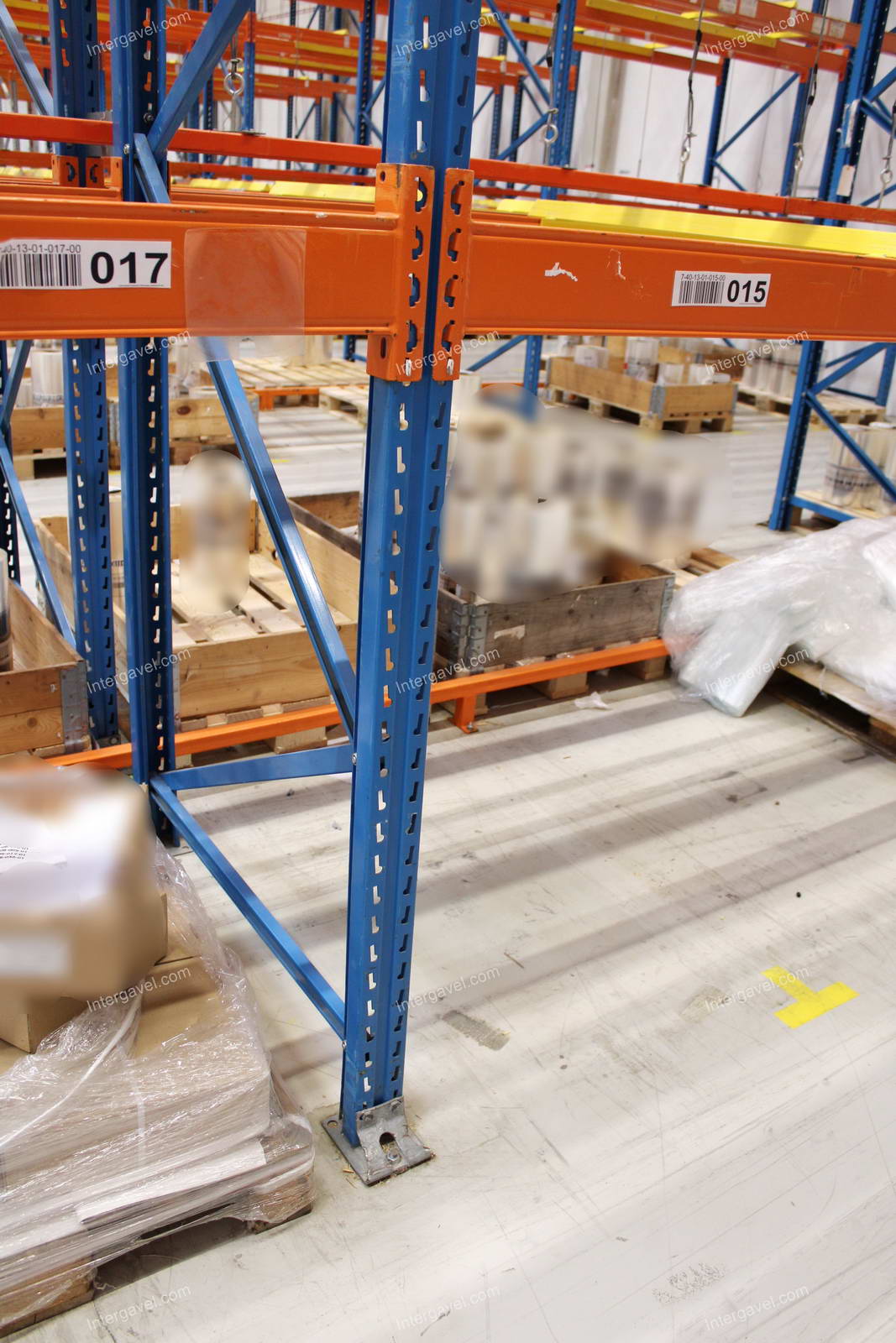 - paletta megvezető - tartószint közepén lévő, gerendákhoz rögzített sárga színű szerkezet