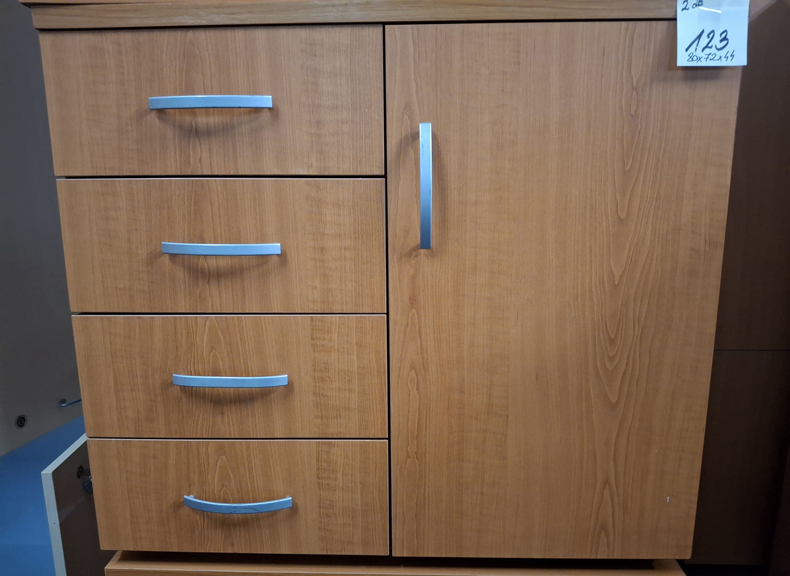 Szekrény 1 ajtós, 1 polcos, 4 fiókos 80x44x72 cseresznye