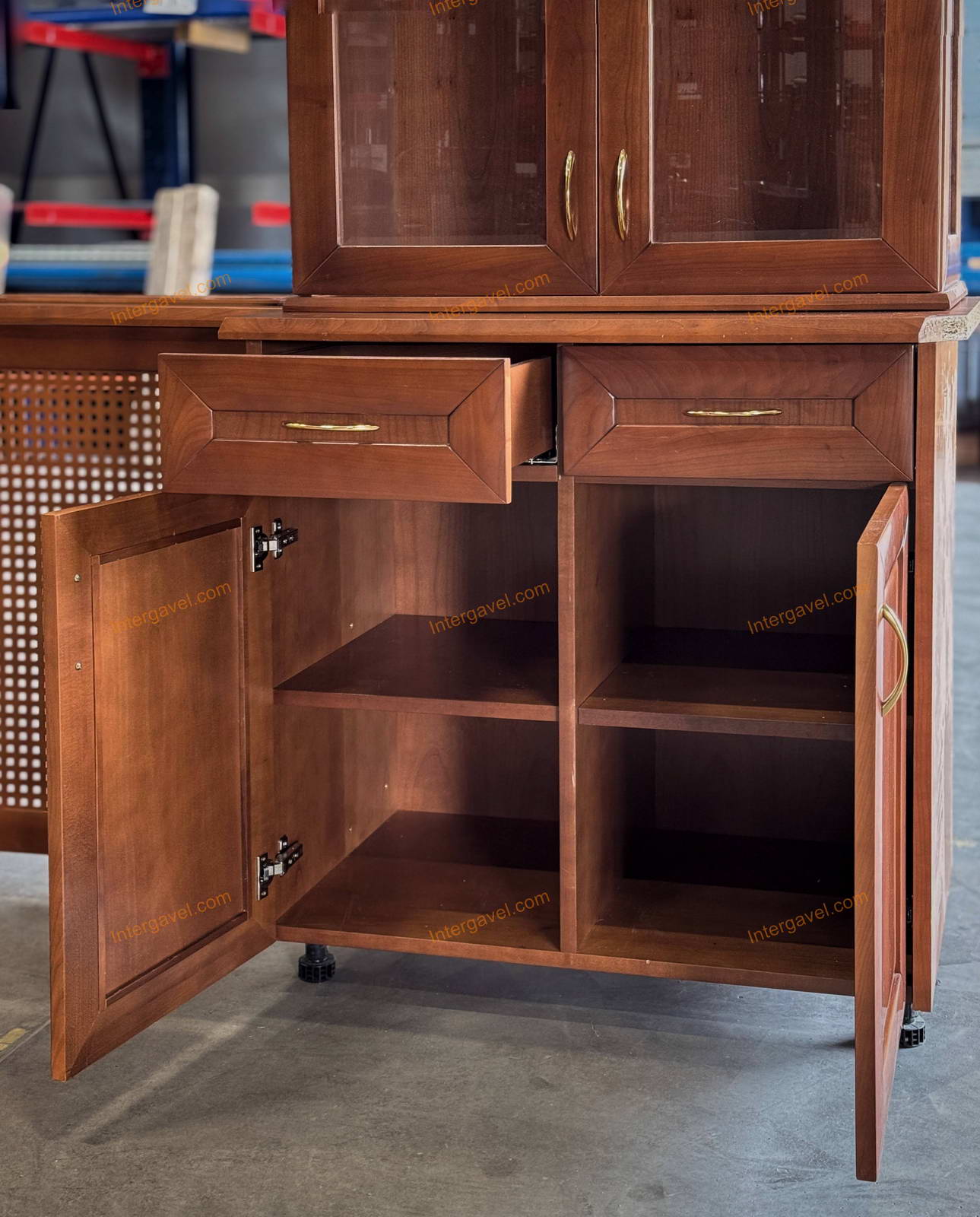 Fózolt üveges felső szekrények, üveg polcokkal