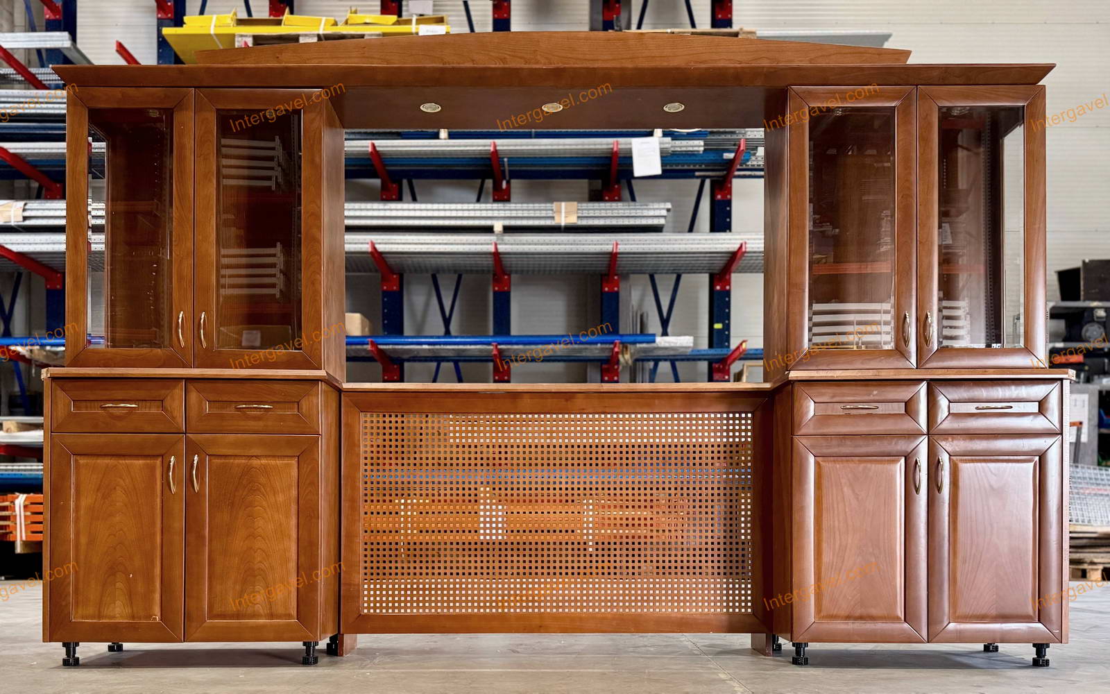 Spot világítás a szekrények alján és a felső szekrényeket összekötő dekor hídon! (220 voltos rendszer, trafókkal!)