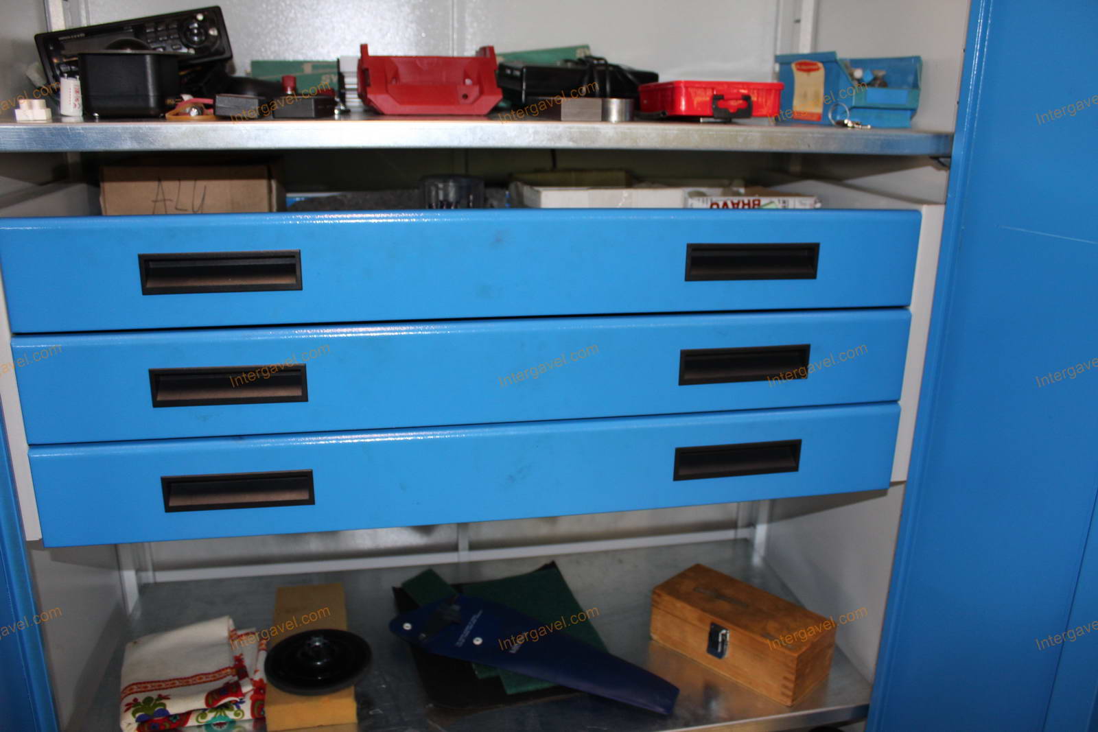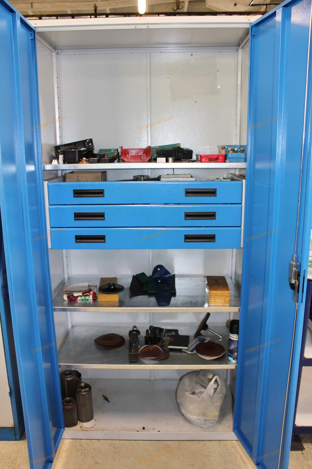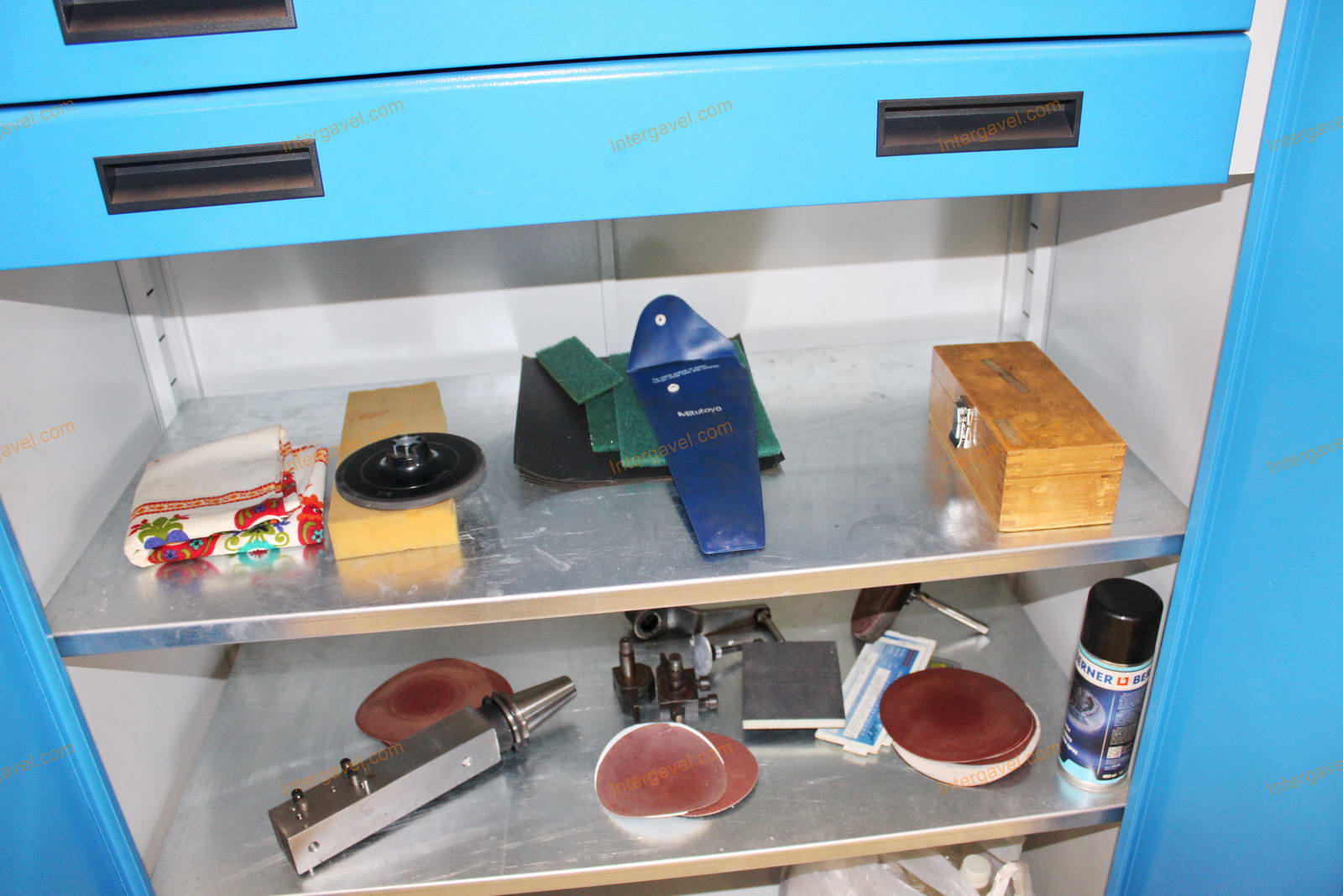 Tétel a szerszámos szekrényt és a benne tárolt szerszámokat, szerszámtartókat és egyéb eszközöket tartalmazza