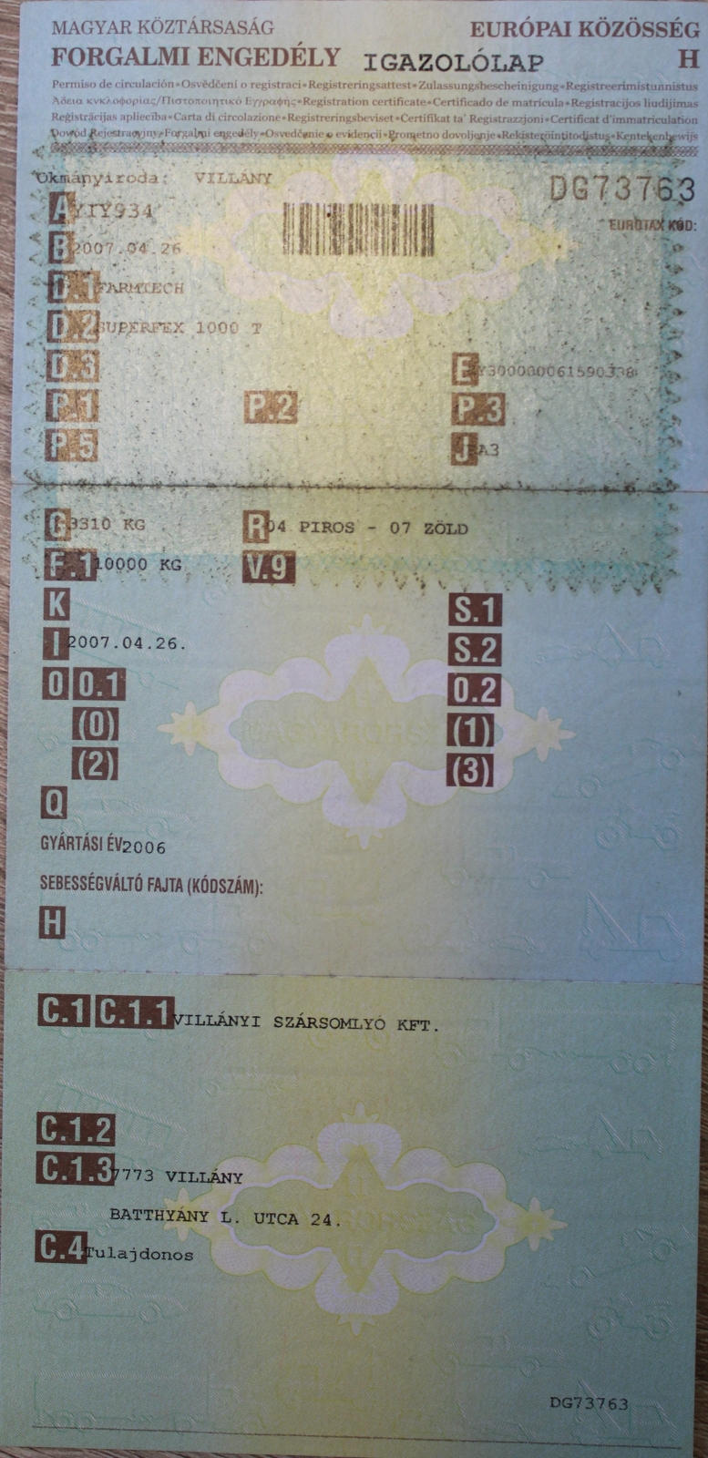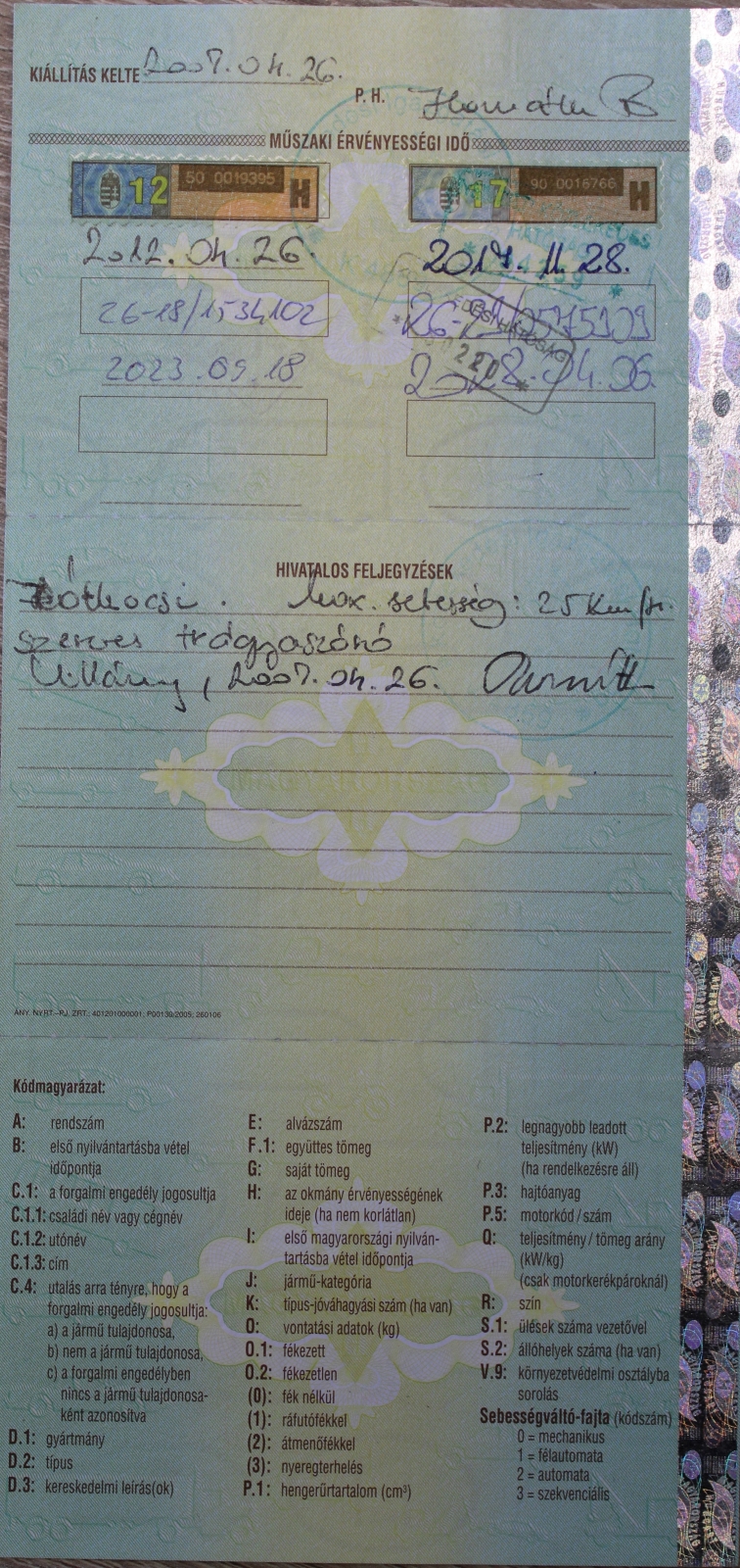 Műszaki vizsga érvényessége: 2028.04.06.