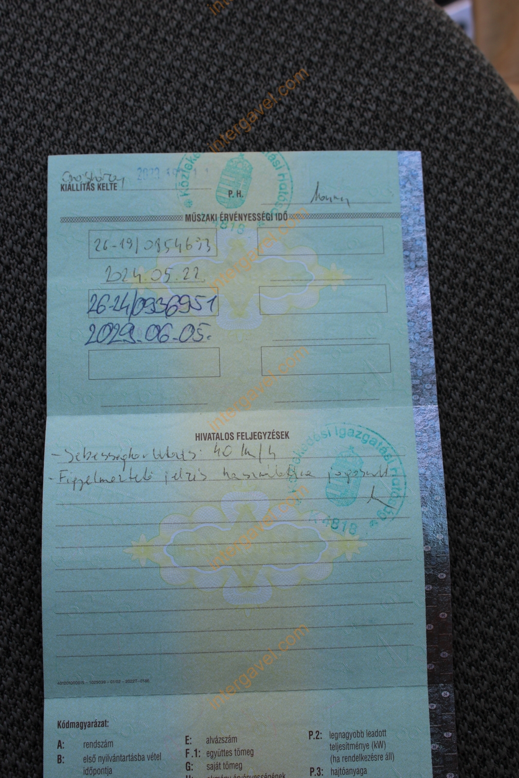 Műszaki érvényessége: 2029.06.05.
