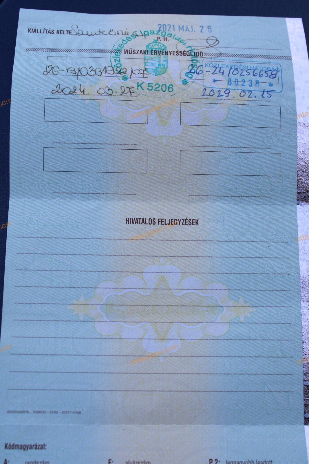 Műszaki vizsga érvényessége: 2029.02.15.
