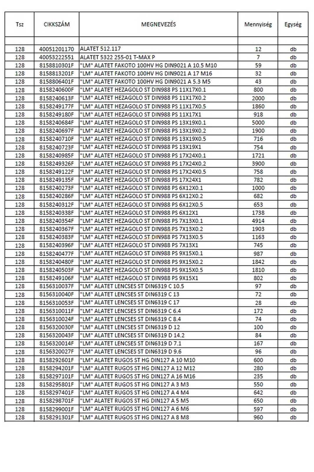 - eladó nyilvántartása szerint a tétel tartalmának felsorolása a második képen látható, ami kb. 95 %-os pontosságú