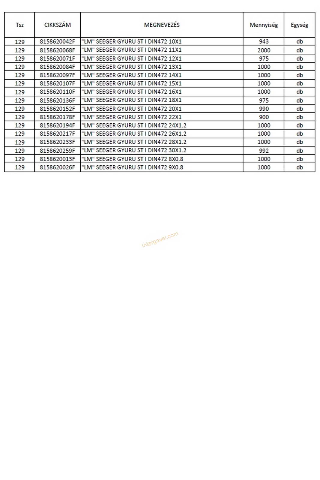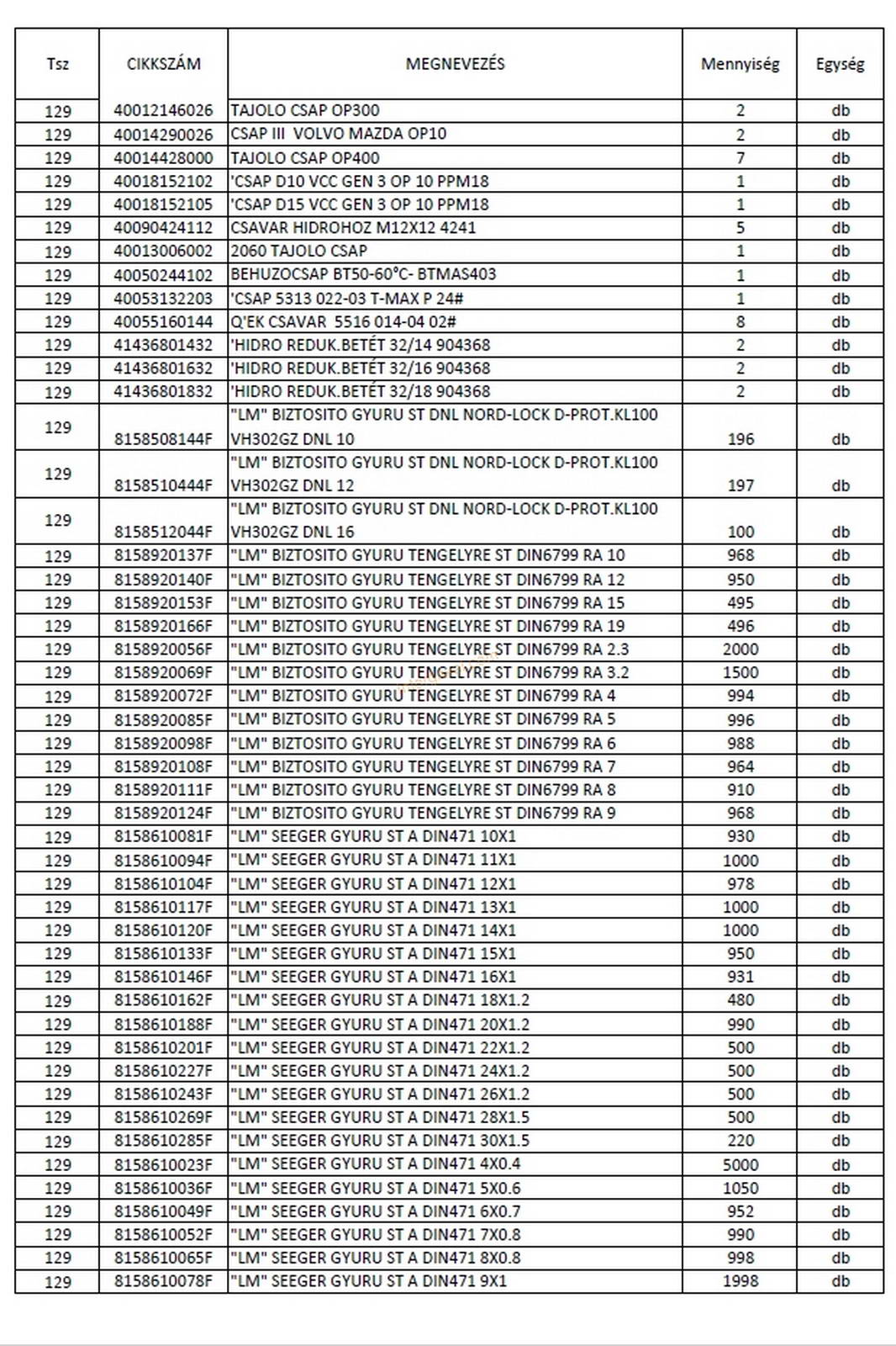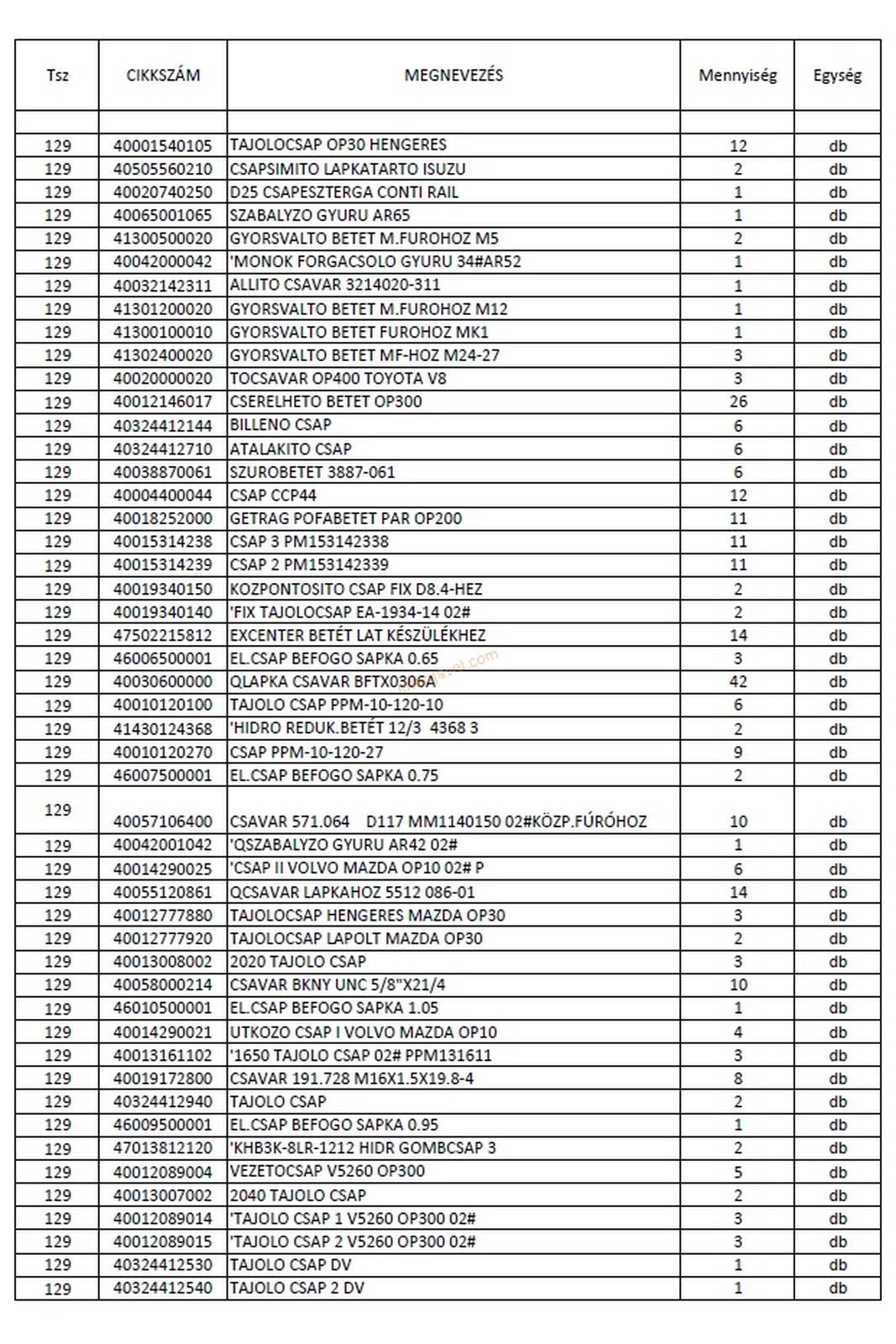 - eladó nyilvántartása szerint a tétel tartalmának felsorolása a 02-04 képen látható, ami kb. 95 %-os pontosságú