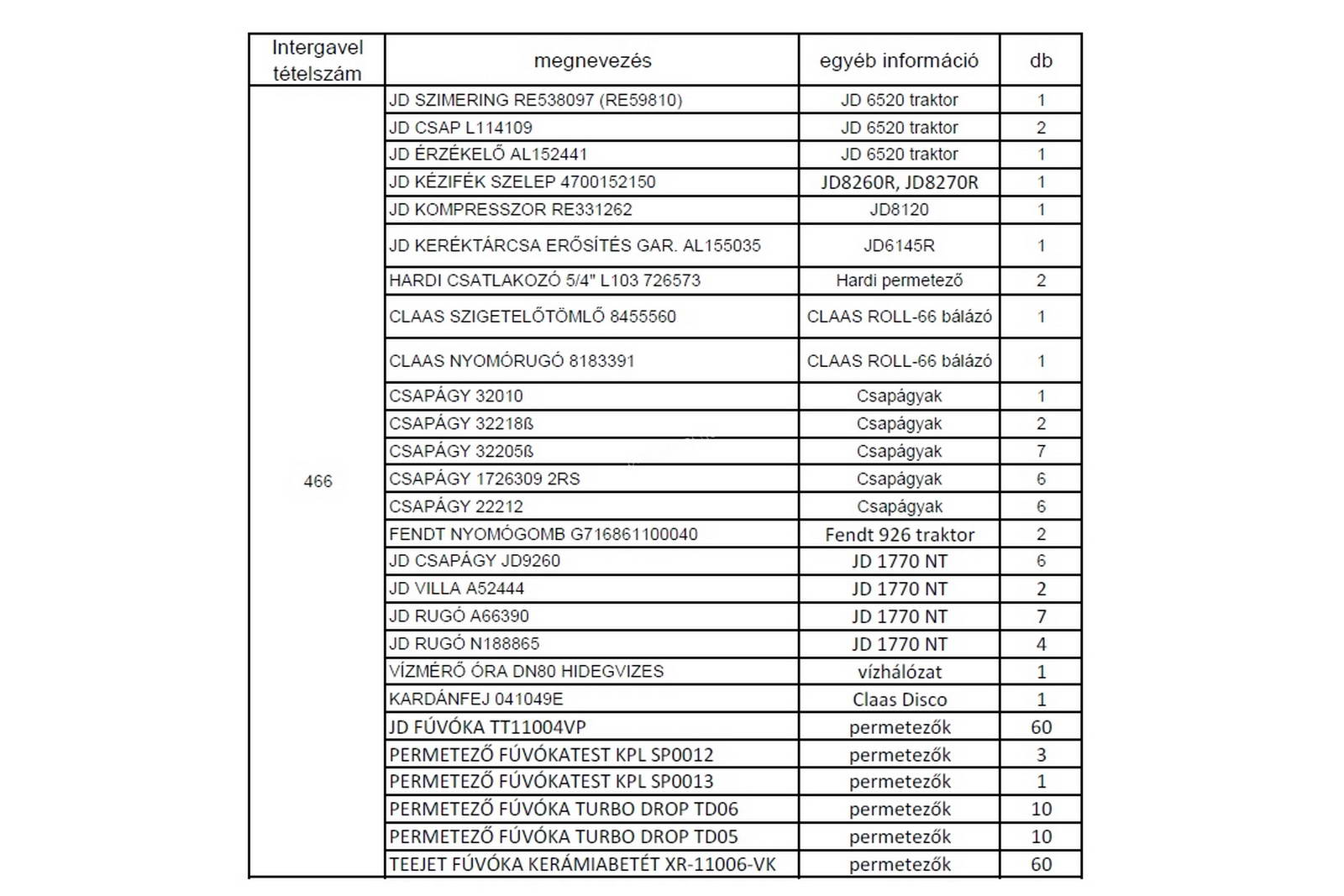 - tétel tartalma, az eladó nyilvántartása szerint a 02-es képen látható