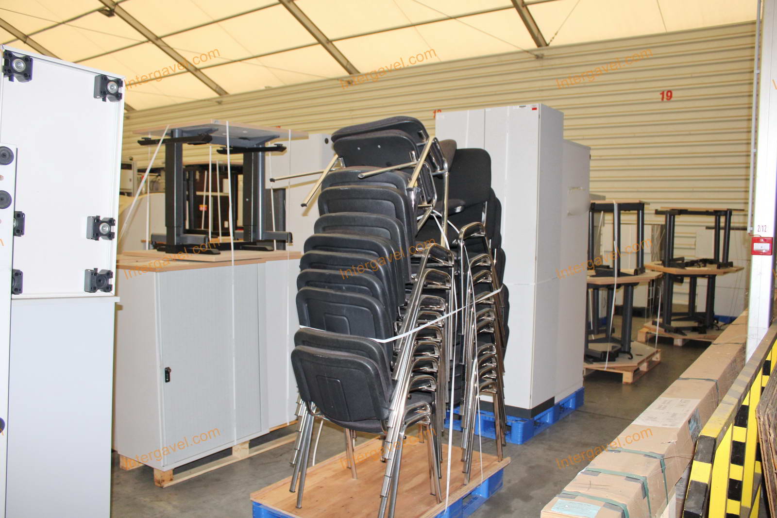 Tétel jellemzően asztalokat, székeket, szekrényeket, konténereket, fotelokat tartalmaz