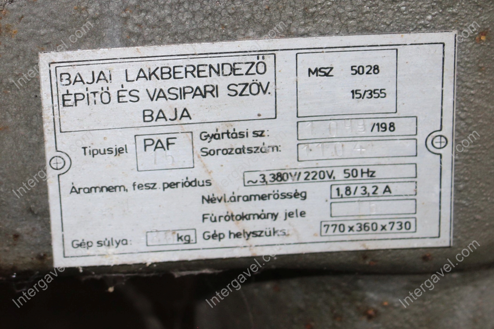 - gyártó: Bajai Lakberendező Építő és Vasipari Szöv.
