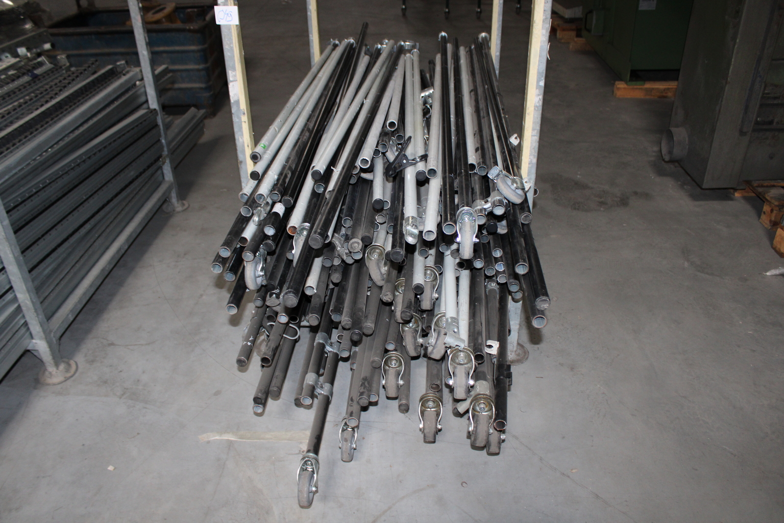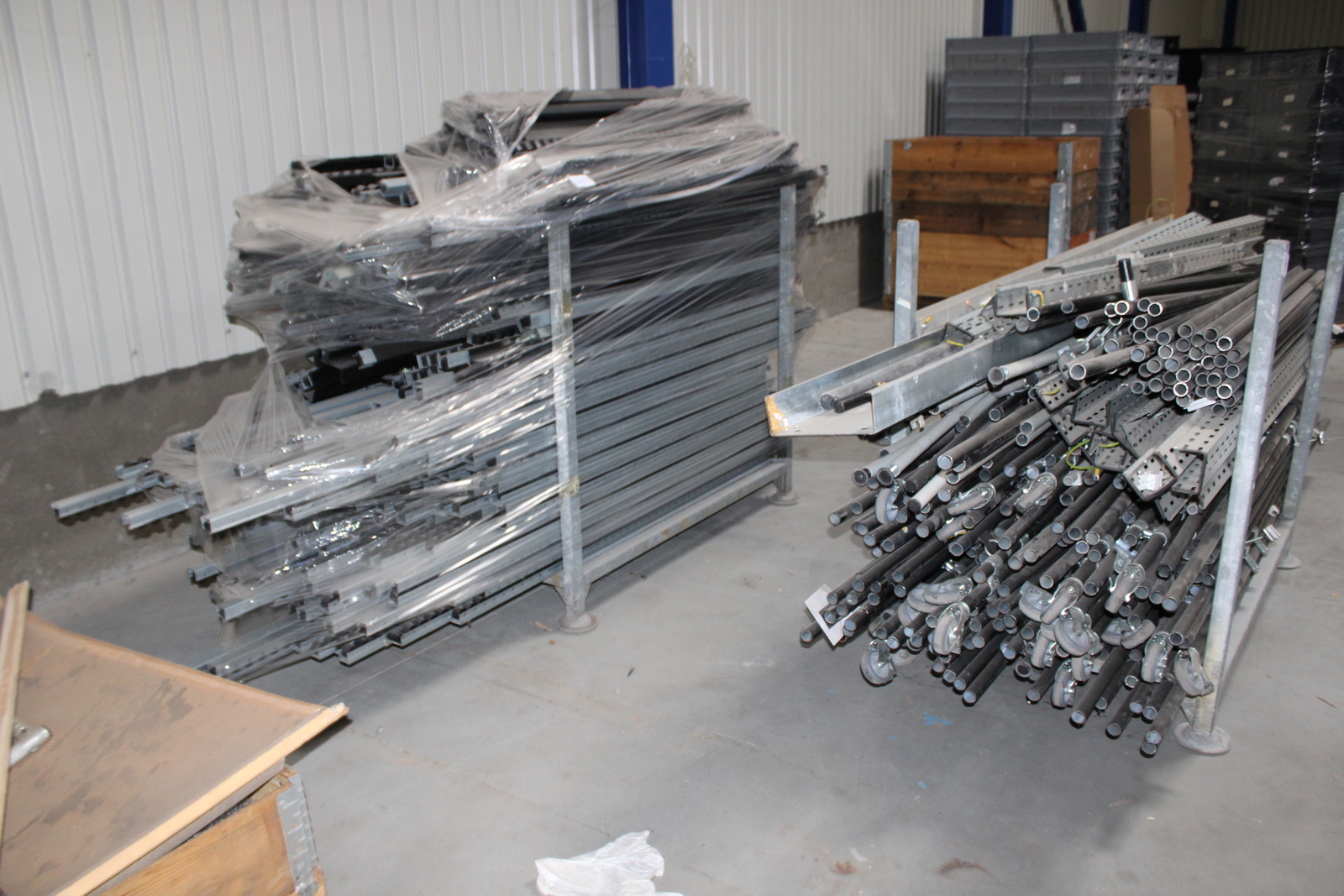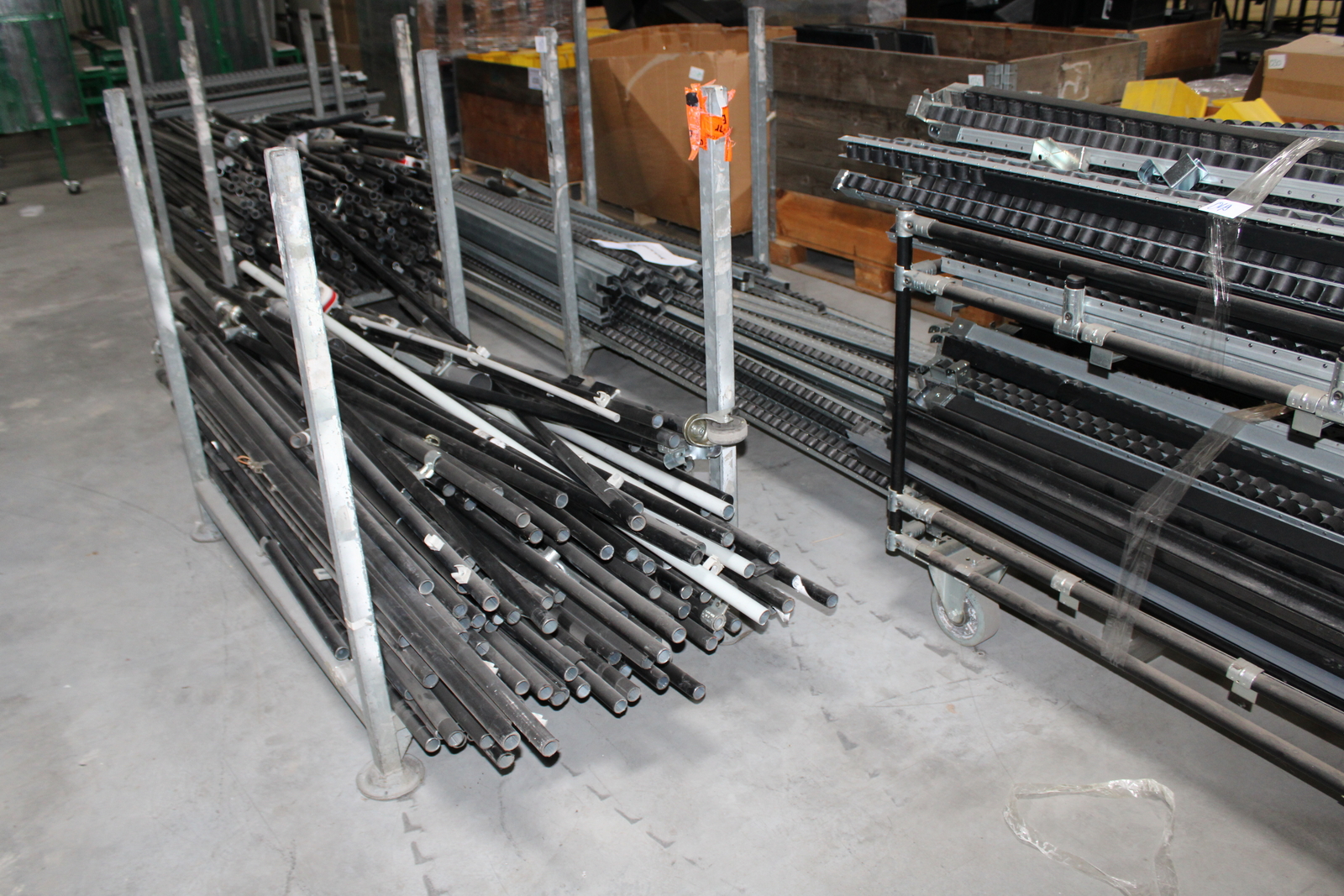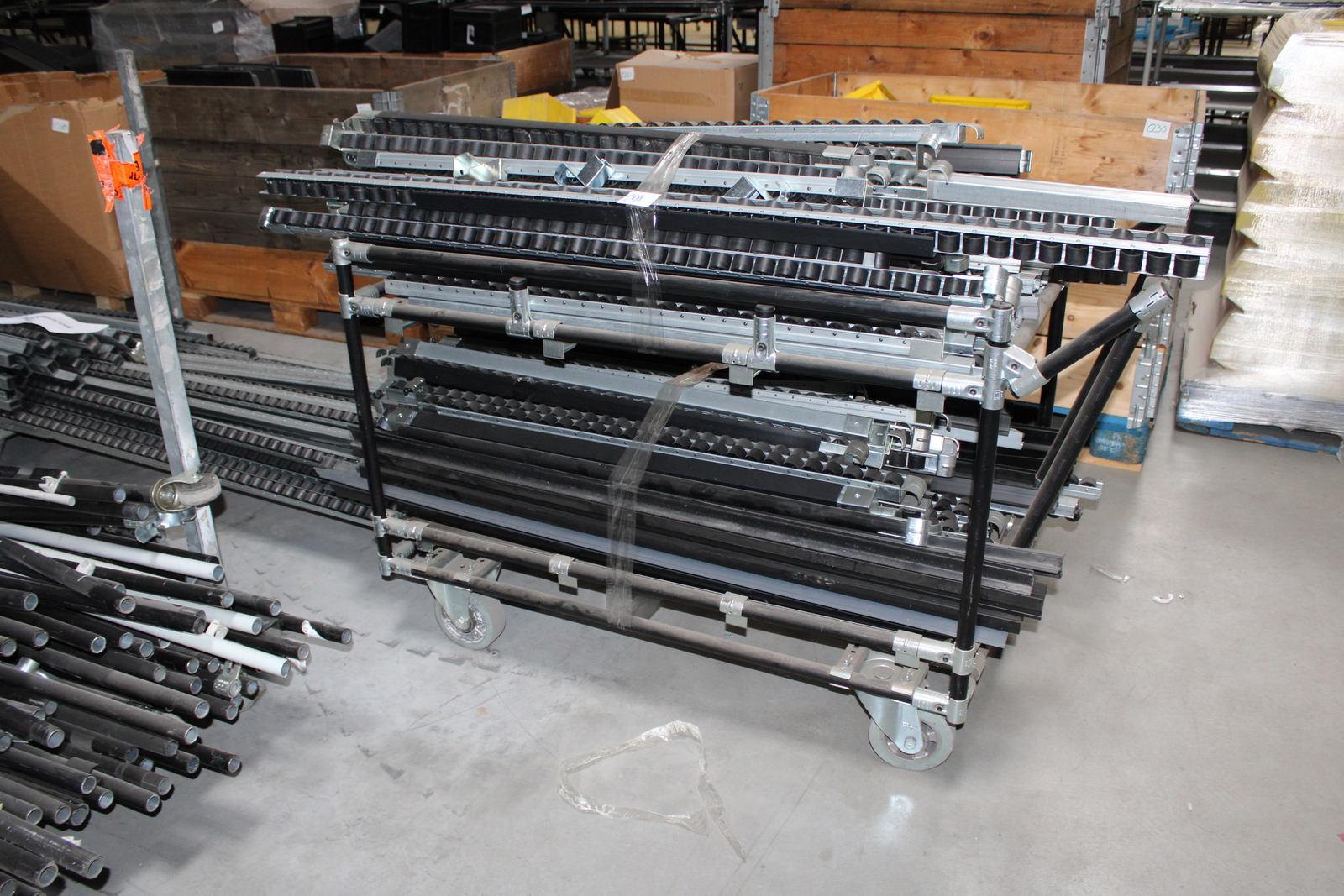 Tétel tartalma a képeken látható 11 kalodában tárolt vegyes görgősorok, csövek ( szerelőállomás elemei)