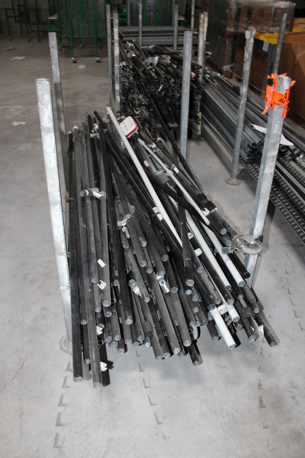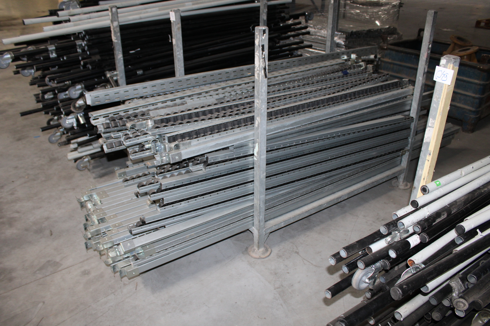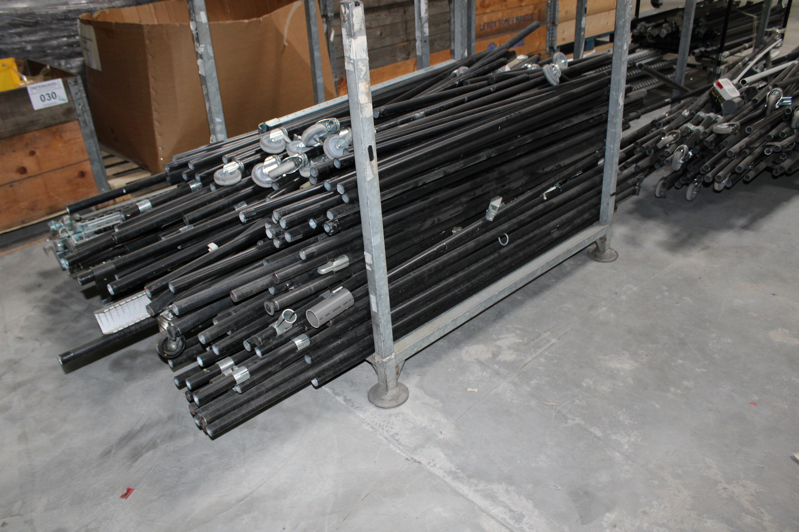Tétel tartalma a képeken látható 11 kalodában tárolt vegyes görgősorok, csövek ( szerelőállomás elemei)
