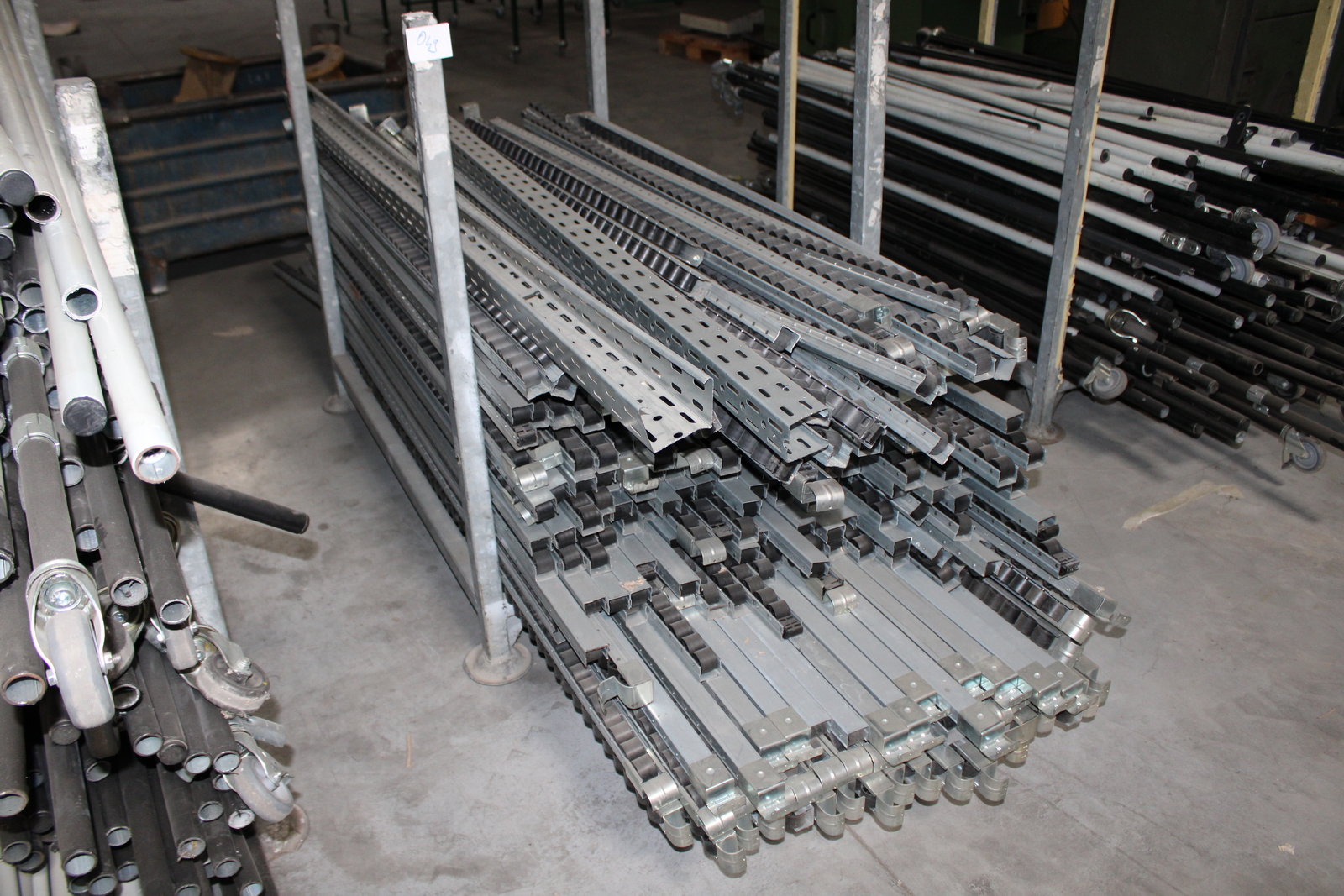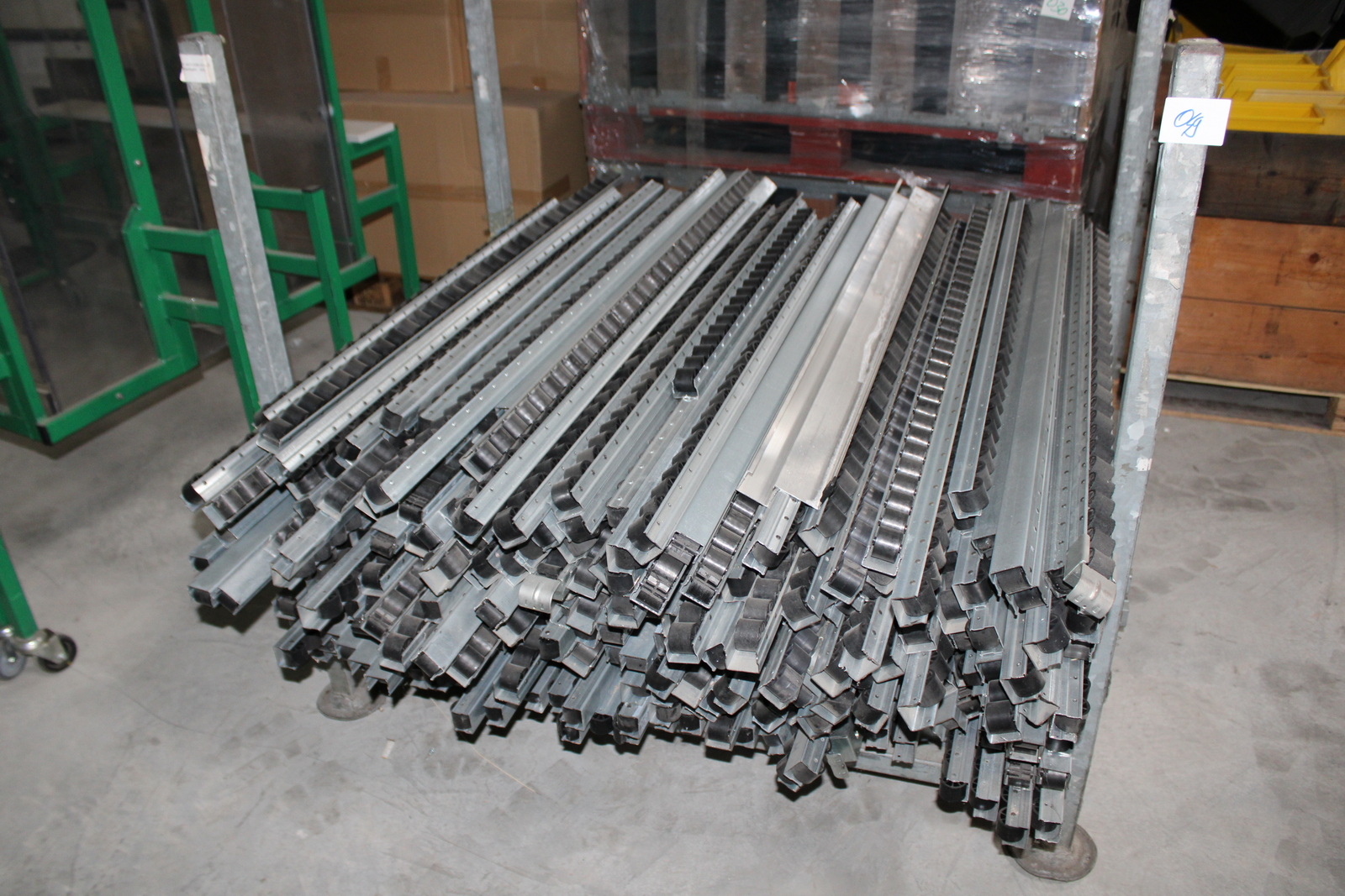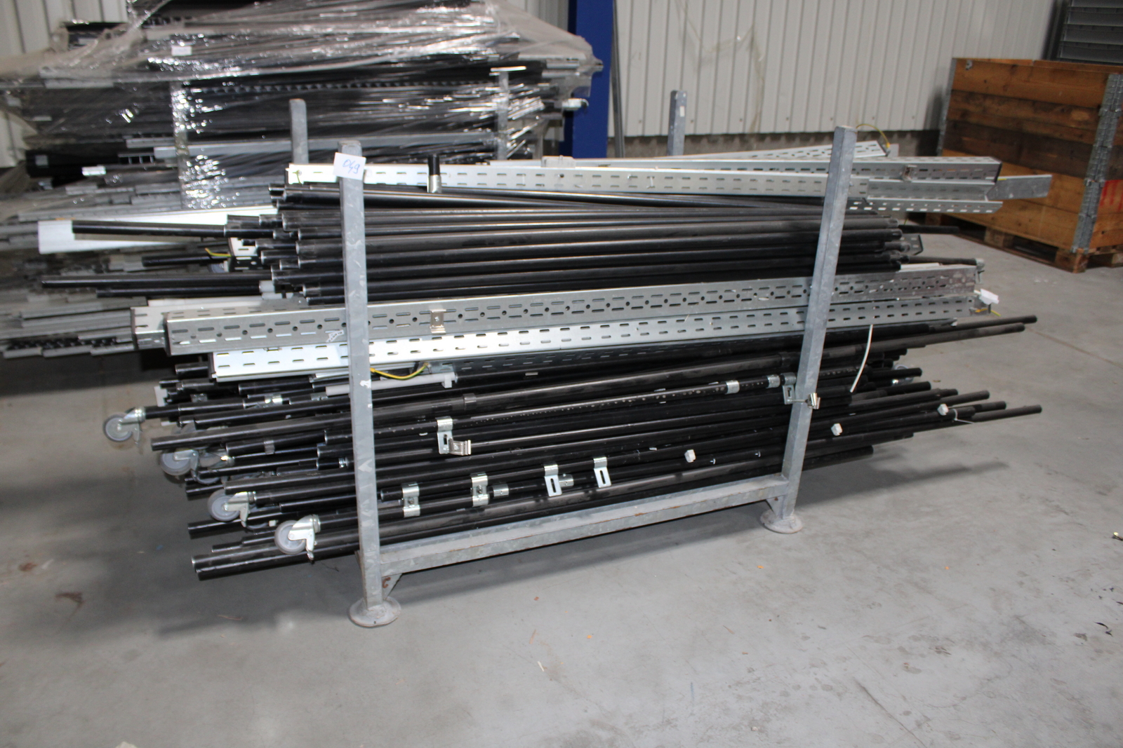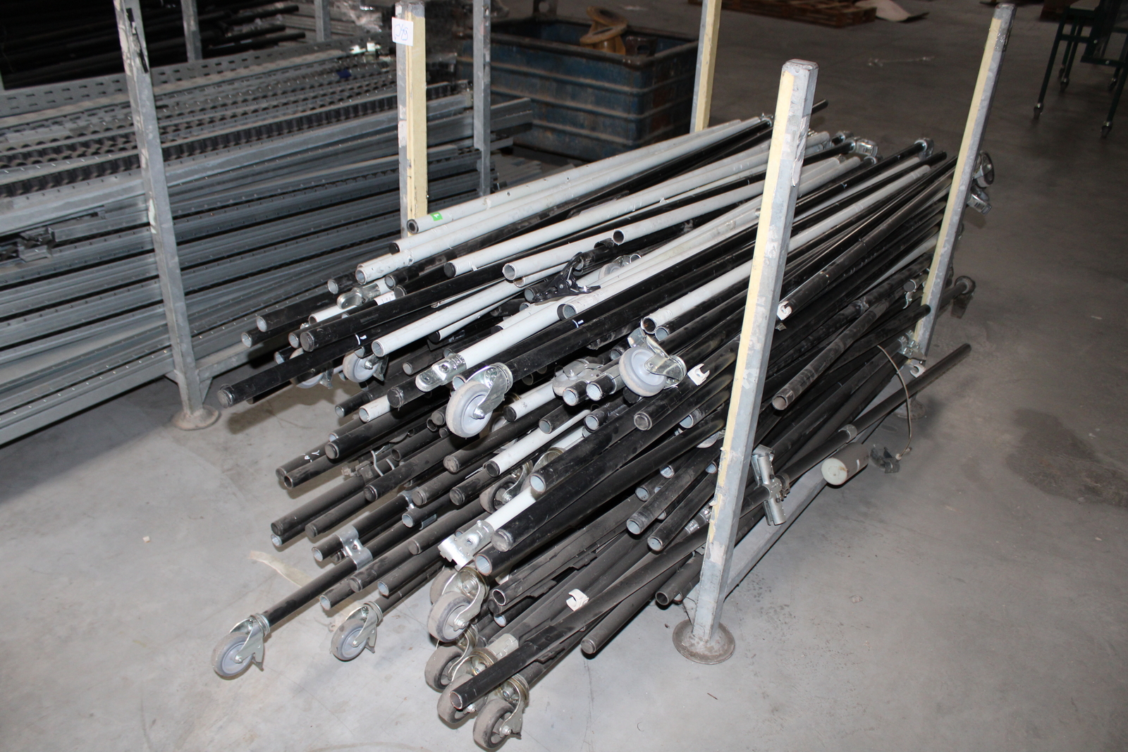 Tétel tartalma a képeken látható 11 kalodában tárolt vegyes görgősorok, csövek ( szerelőállomás elemei)