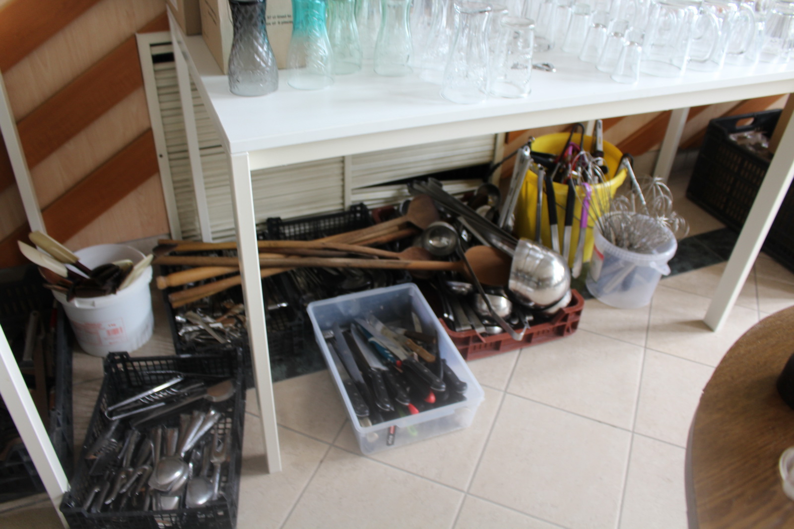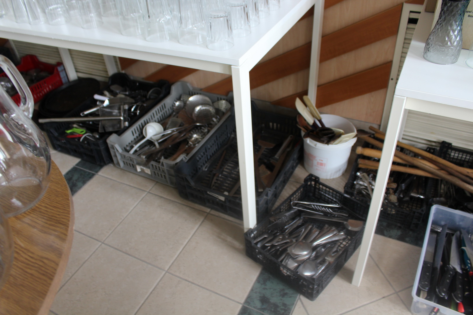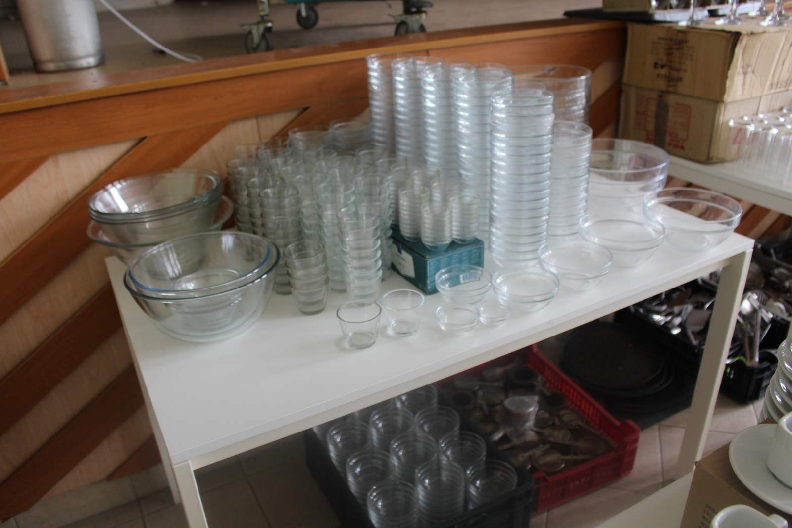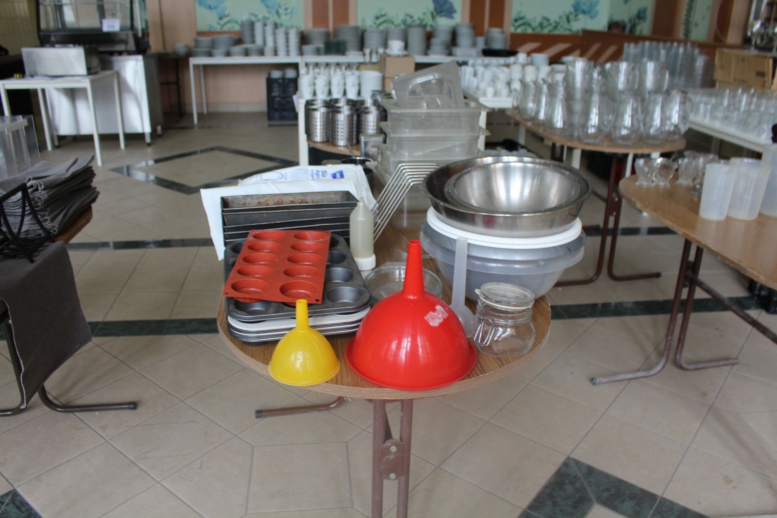 Tétel tartalma a képeken látható vegyes tányérok, poharak, csészék, evőeszközök és egyéb konyhai eszközök.