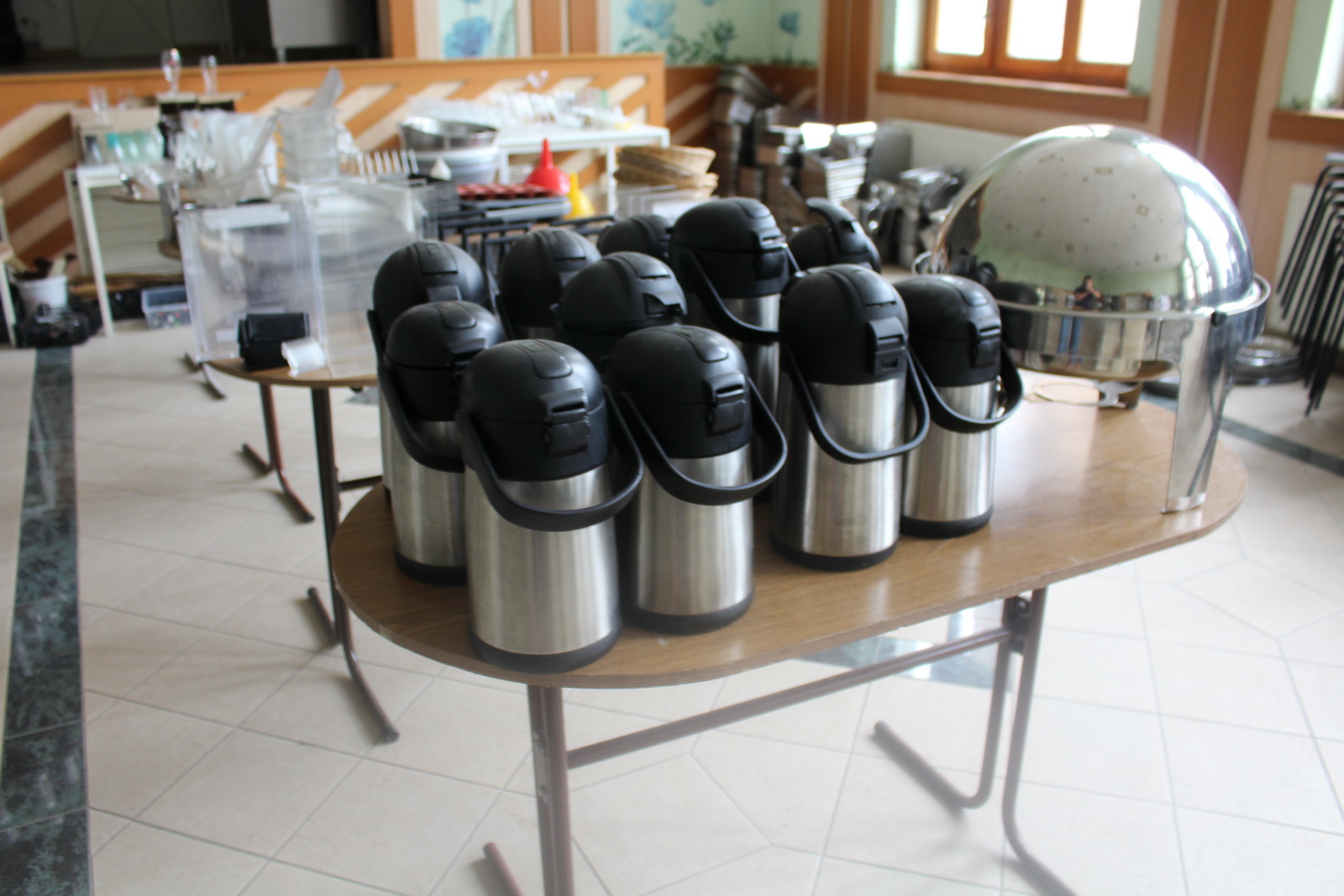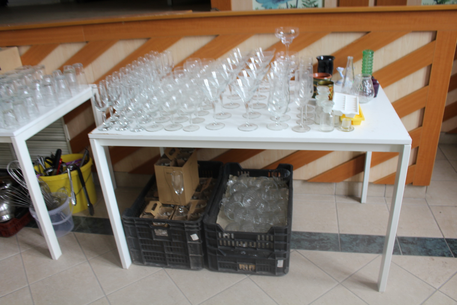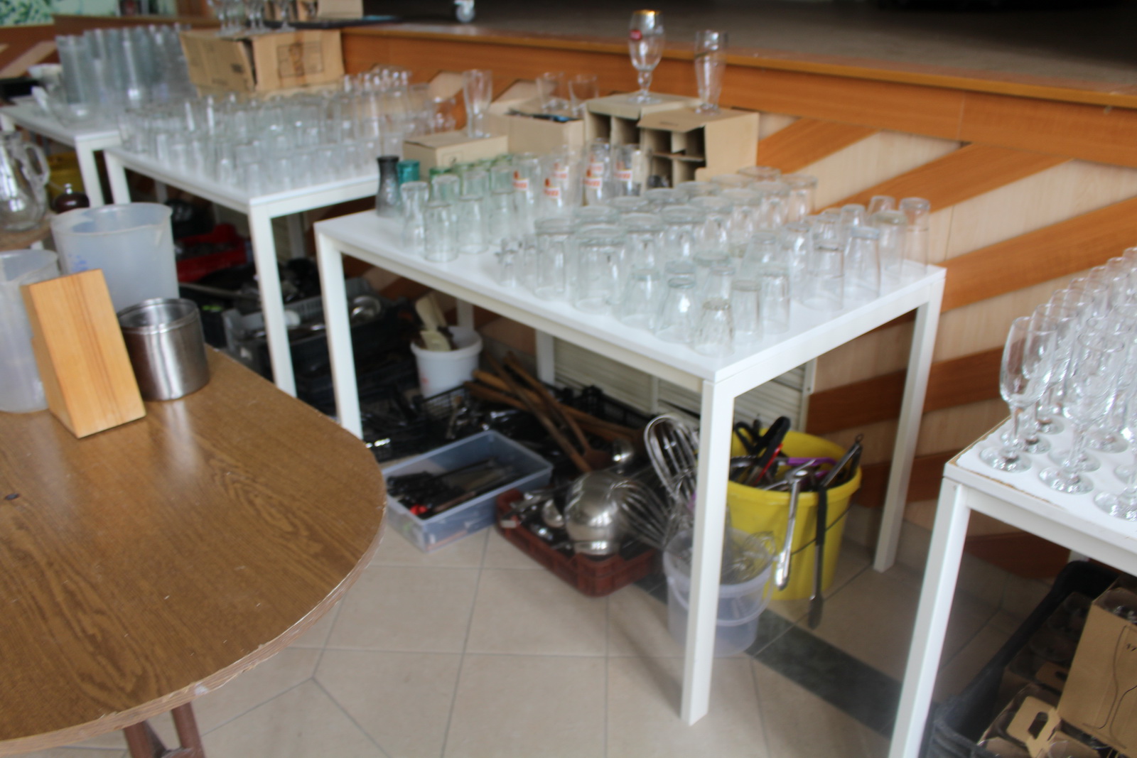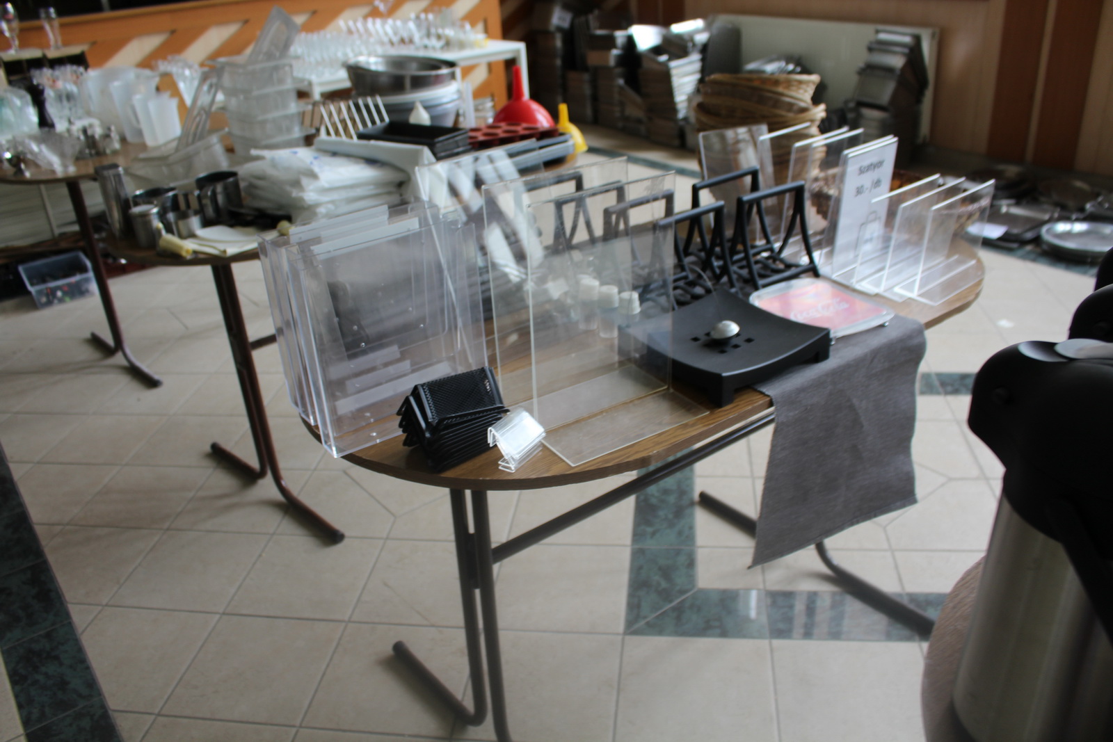 Tétel nem tartalmazza az asztalokat és a műanyag ládákat amiben az eszközök vannak tárolva.