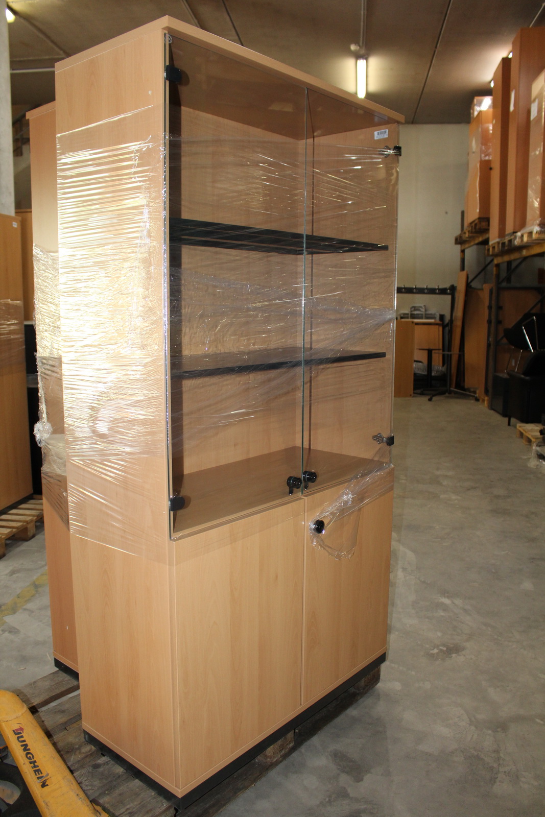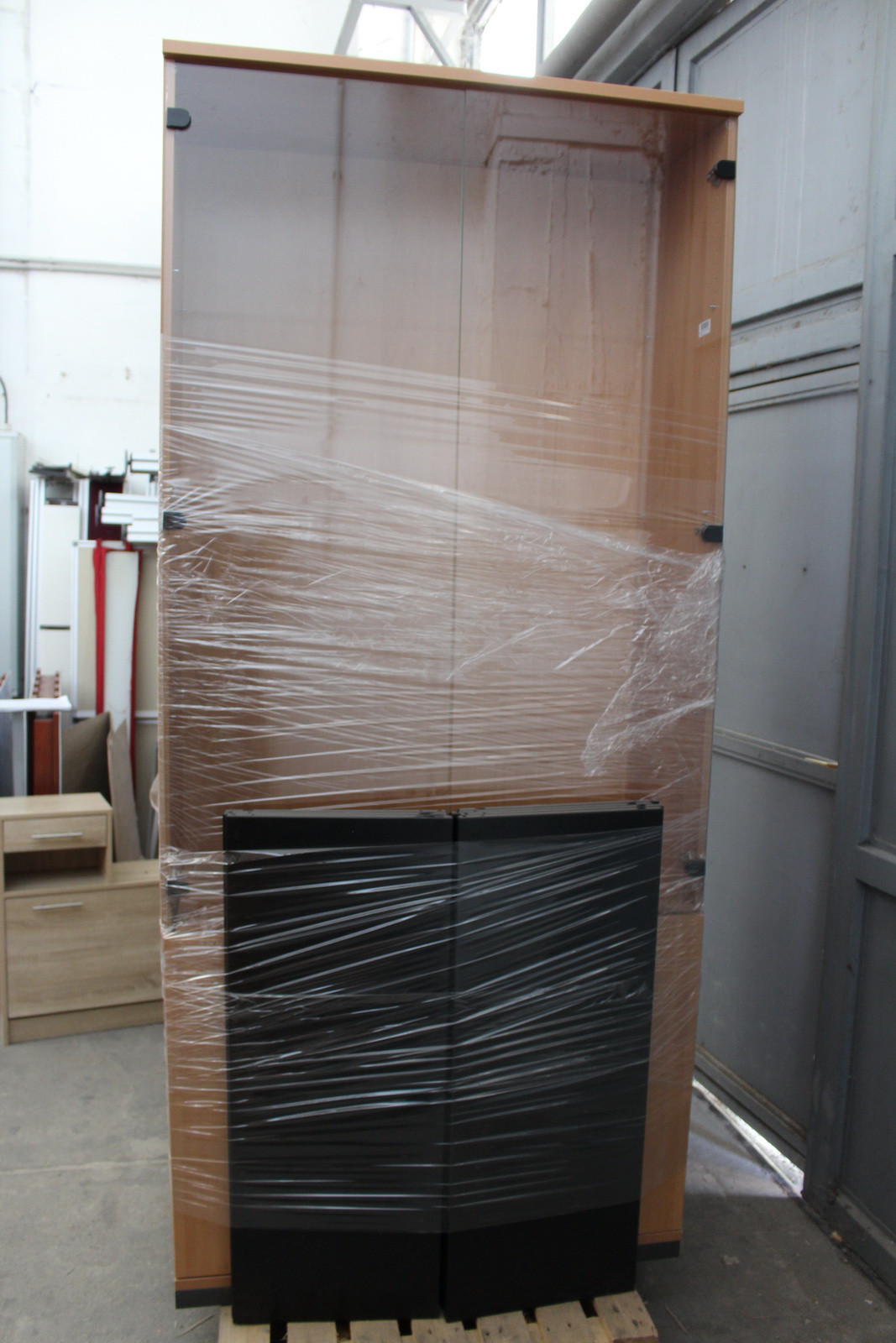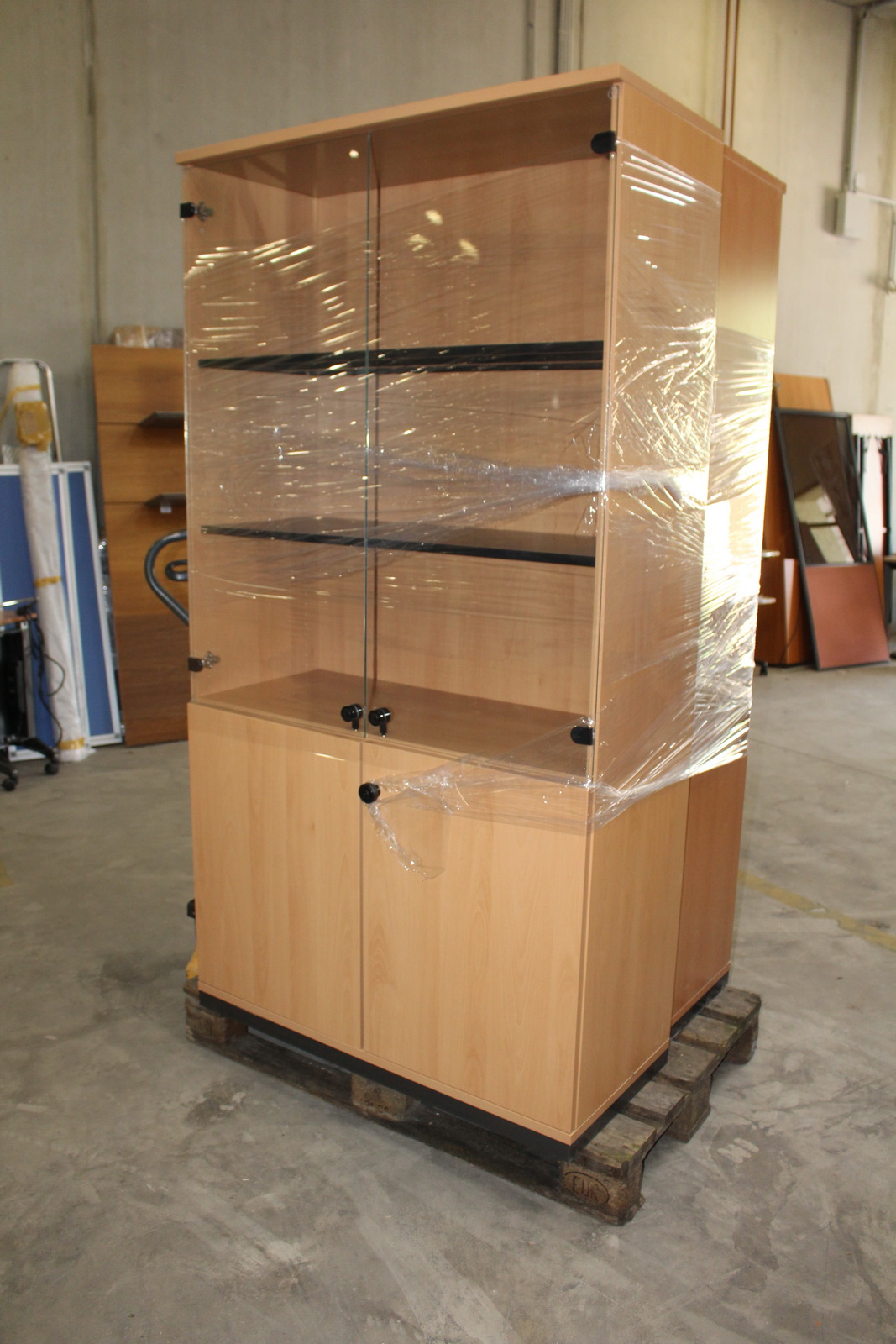 1 db felül üvegajtós polcos szekrény