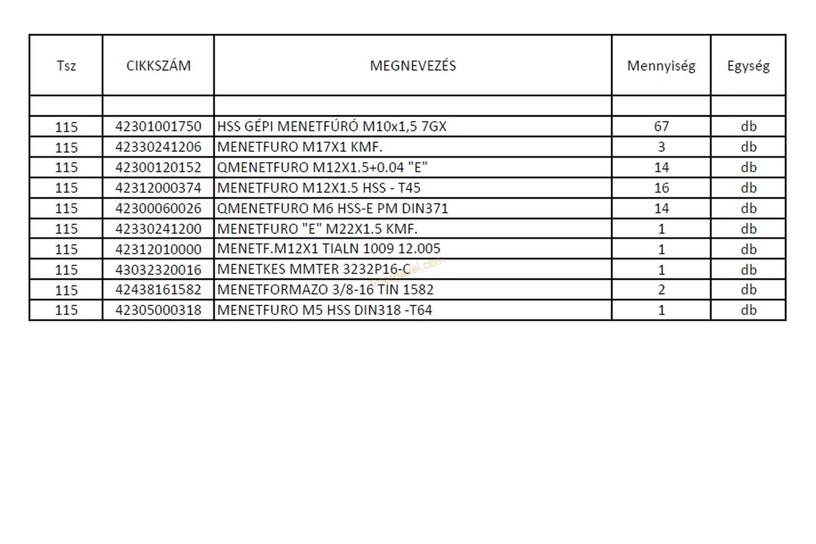 115 - Vegyes szerszámok - menetfúrók