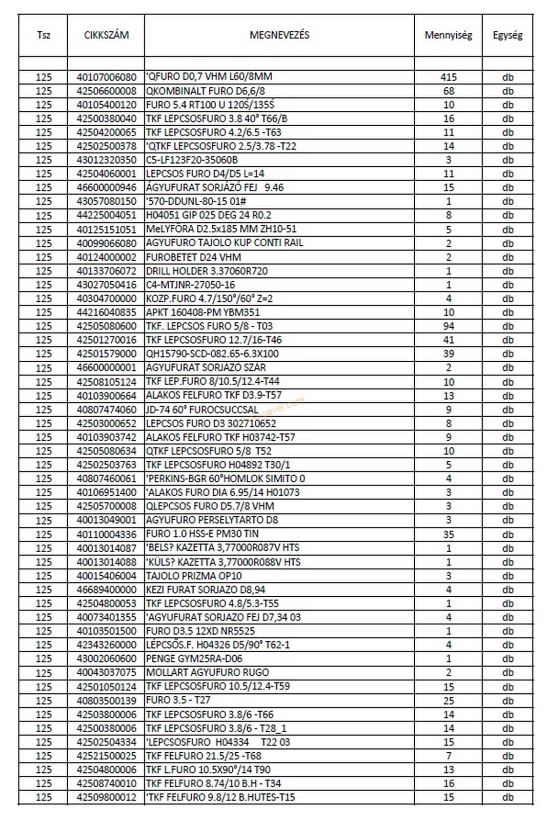 - eladó nyilvántartása szerint a tétel tartalmának felsorolása a második képen látható, ami kb. 95 %-os pontosságú